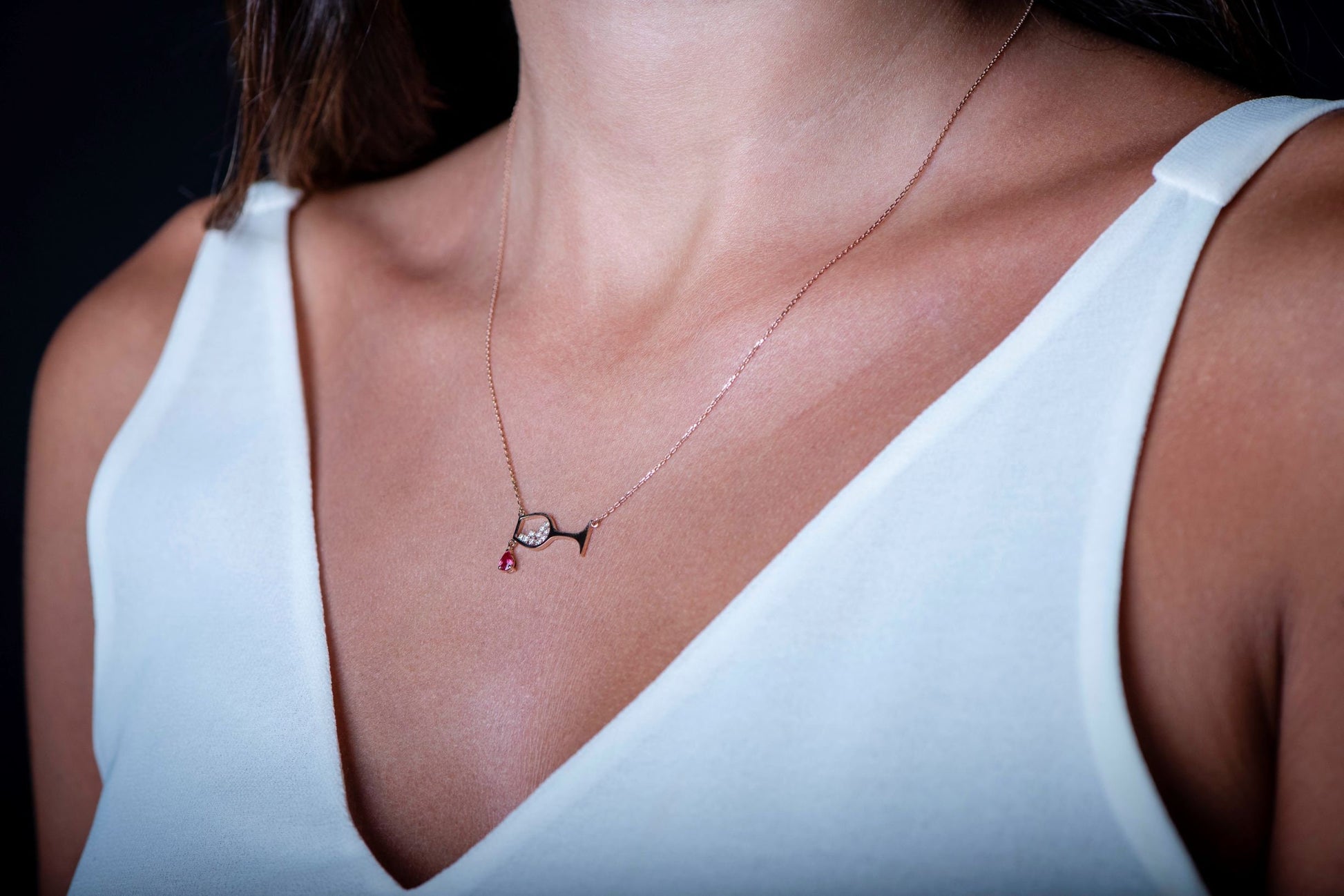 14k Gold Wine Glass Ruby Necklace /Diamond Necklace/Personalized Birthday Gift Necklace/Design Diamond Necklace/ Gift For MOM