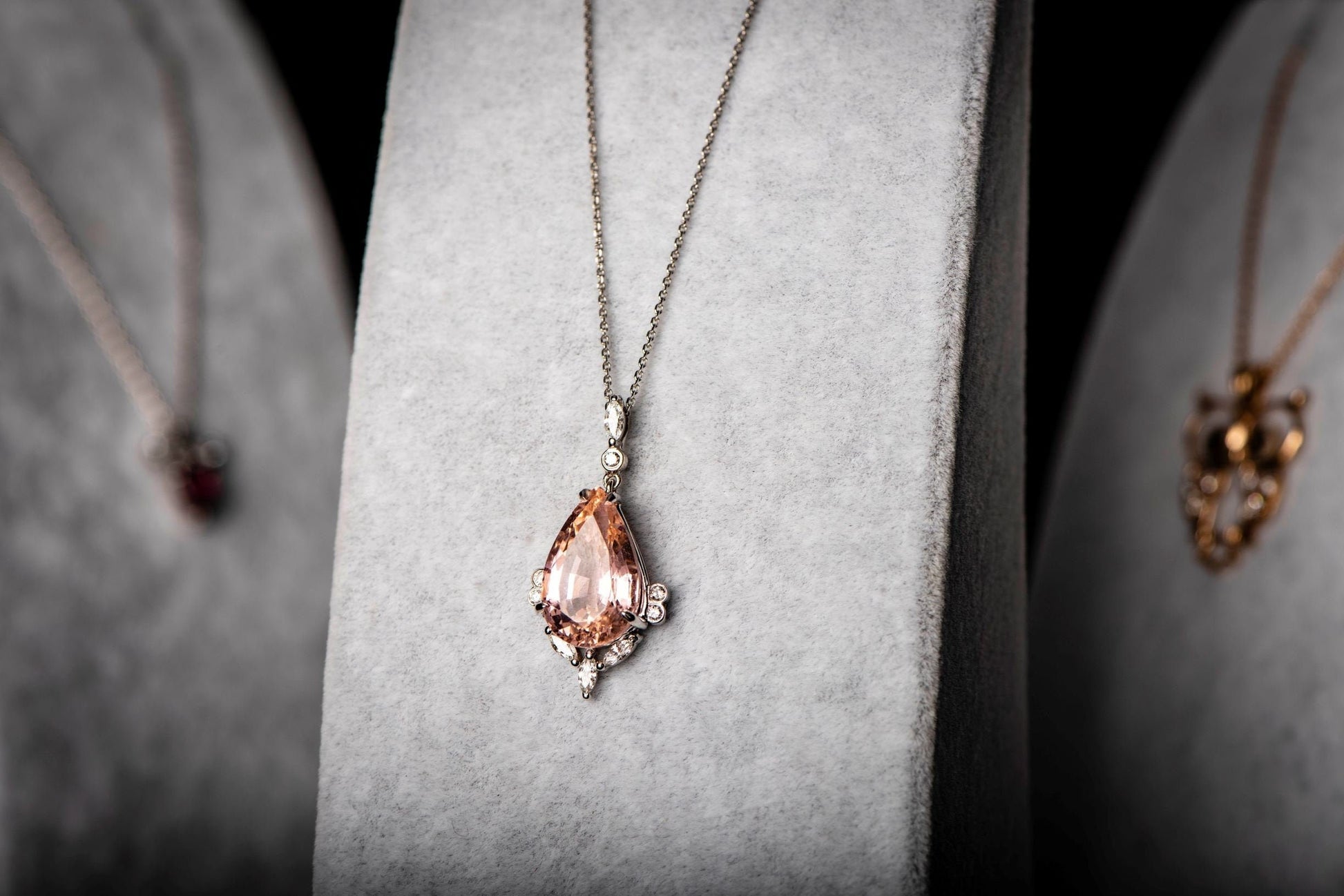 14K Rose Gold Morganite and Diamond Pendant Necklace - Natural 11.56ct Pear Cut Morganite Jewelry for Anniversary and Wedding Gifts