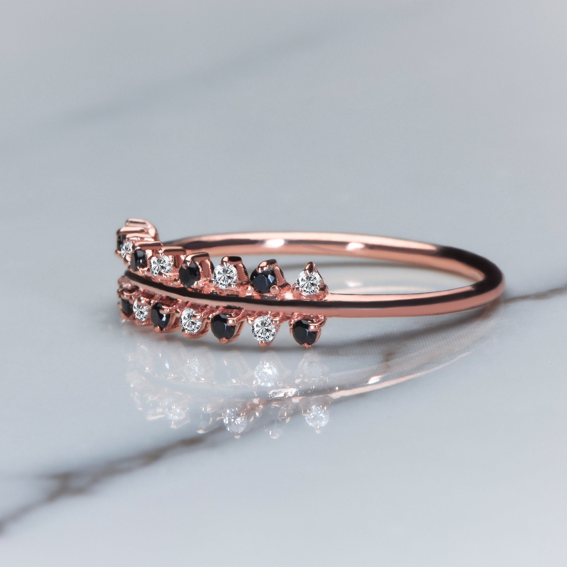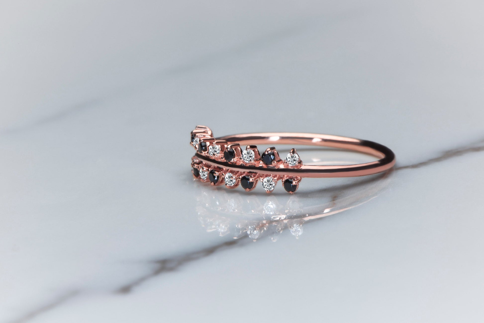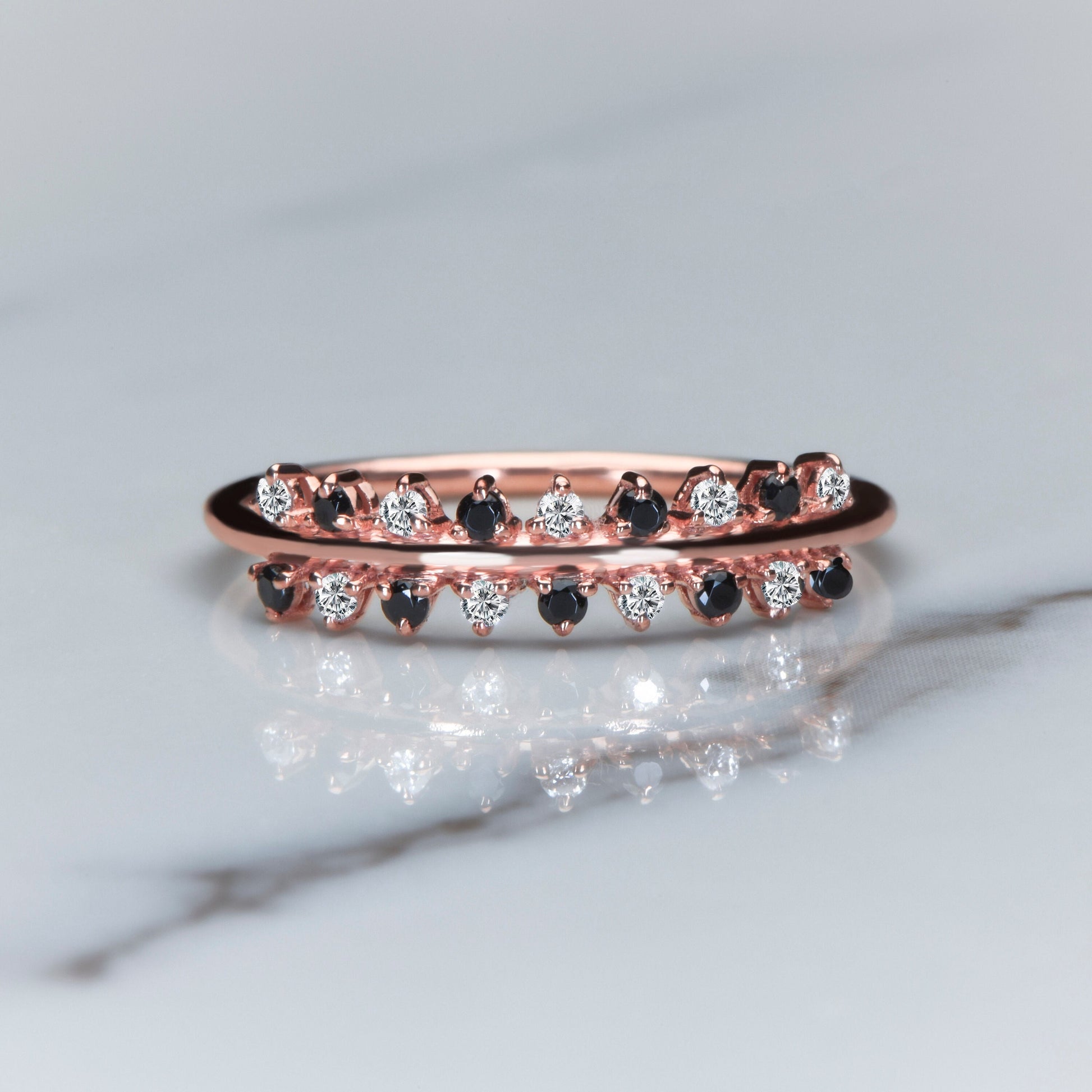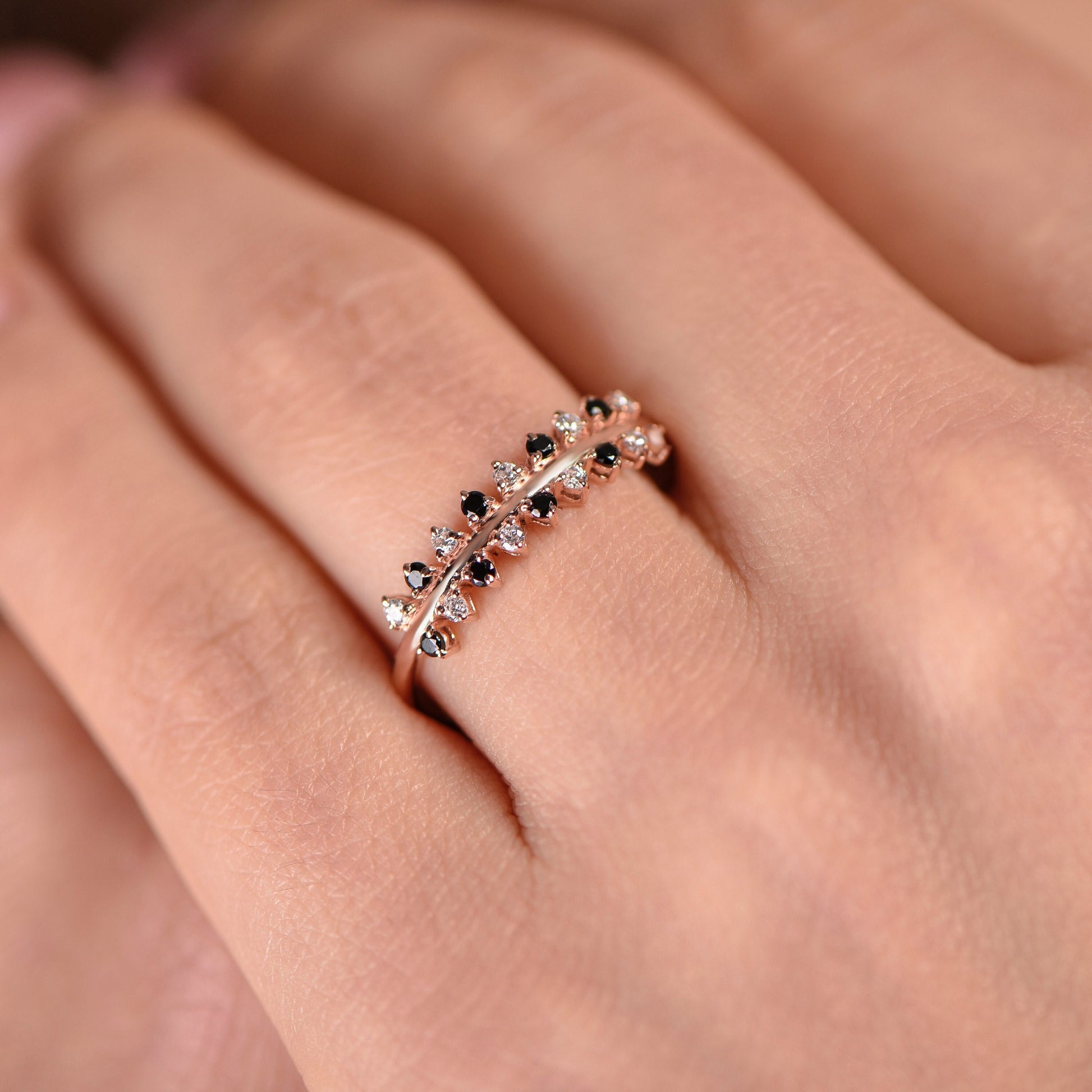 14K Solid Gold Black and White Diamond Half Eternity Ring – Dainty Stacking Ring