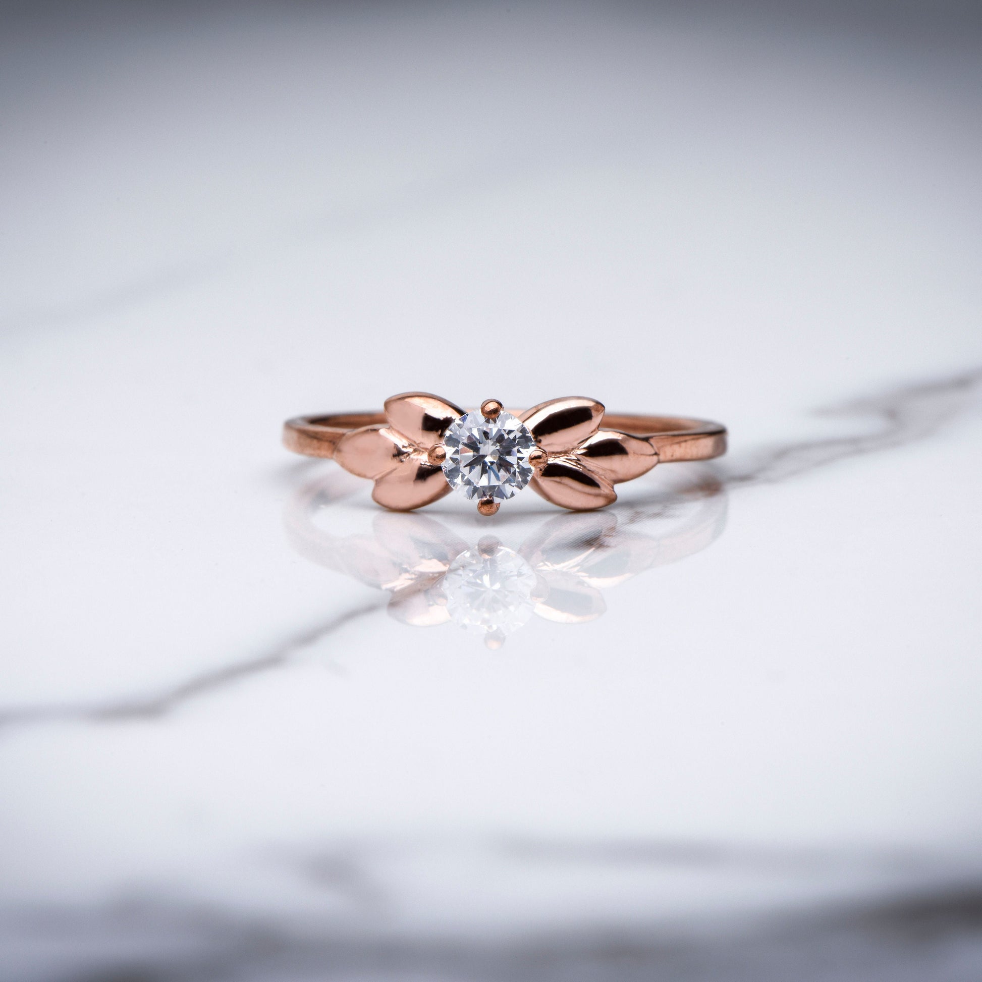 Introducing our exquisite Diamond Rose Gold Solitaire Diamond Leaf Engagement Ring! Handcrafted with love and attention to detail, this stunning piece features a radiant solitaire diamond set in lustrous rose gold. The intricate leaf design adds a touch of nature-inspired charm, making it a truly unique and feminine choice for your special someone. With its timeless elegance and exceptional craftsmanship, this engagement ring will shine as bright as your love story. Make a statement with this captivating piece that symbolizes eternal love and natural beauty. Perfect for the modern bride who craves a touch of romance and sophistication, this Diamond Rose Gold Solitaire Diamond Leaf Engagement Ring is a symbol of forever.