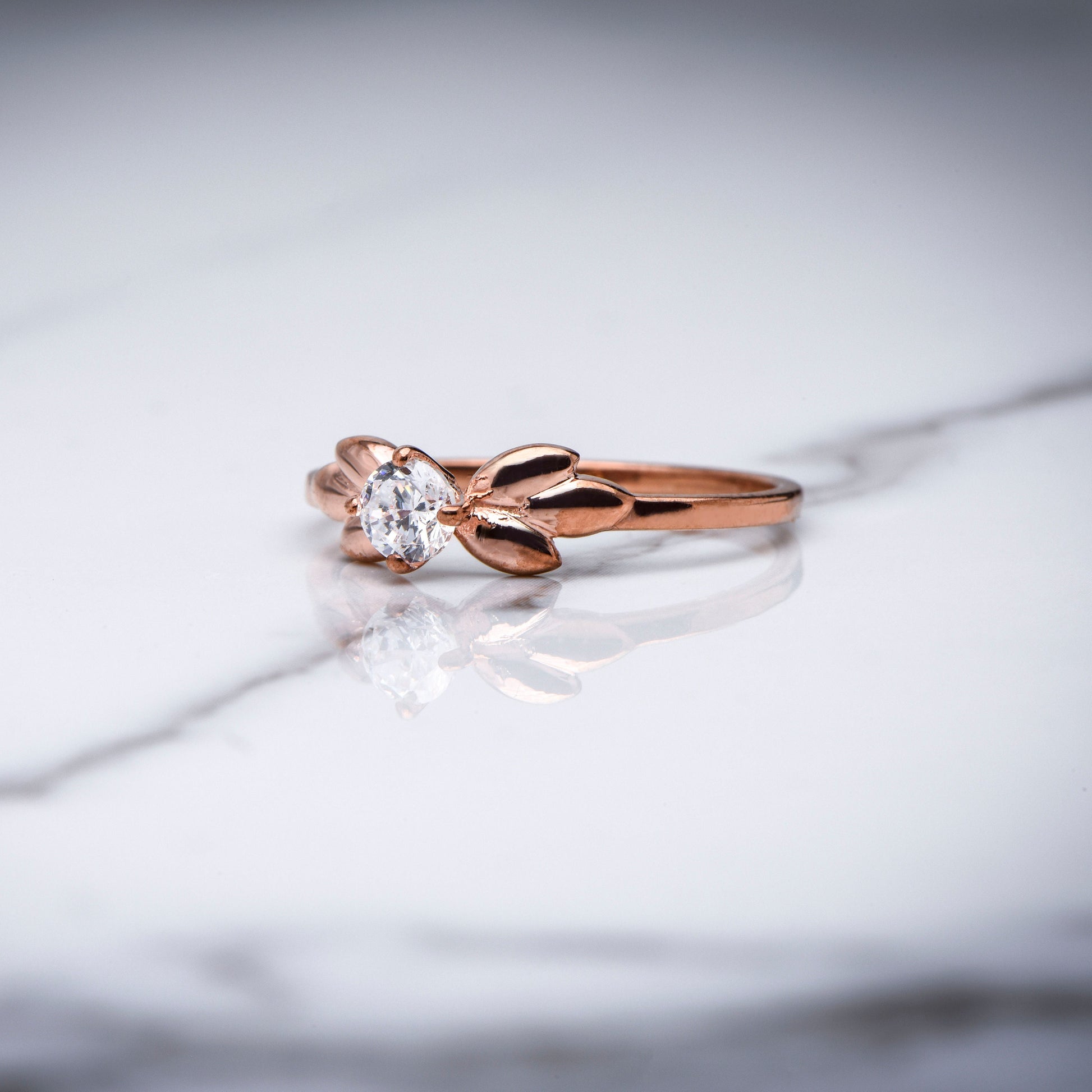 14K Solid Gold Elegant Diamond Rose Gold Solitaire Ring with Leaf Inspired Design,Perfect for Engagements, Gift For Mom