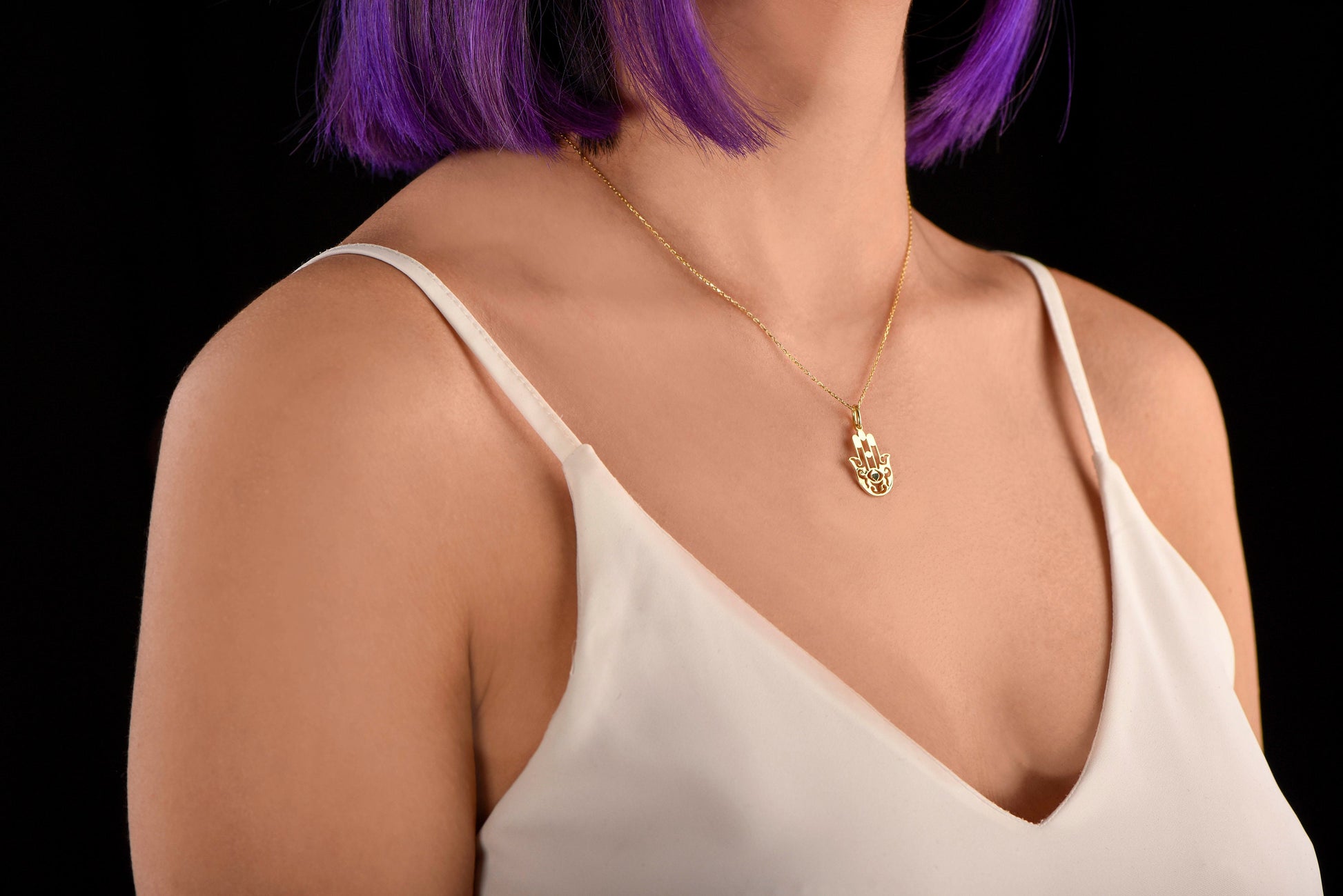 Introducing our exquisite Dainty Solid Gold Hamsa Symbol Necklaces for Christmas Present! These elegant pieces are simply captivating, perfect for adding a touch of grace and spirituality to any outfit. Crafted with utmost care and attention to detail, each necklace features a delicate solid gold Hamsa symbol, renowned for its protective and positive energy. With its dainty design, this necklace is versatile and can effortlessly complement any style, making it an ideal gift for yourself or your loved ones. Embrace the harmonious blend of fashion and spirituality with our stunning Dainty Solid Gold Hamsa Symbol Necklaces!