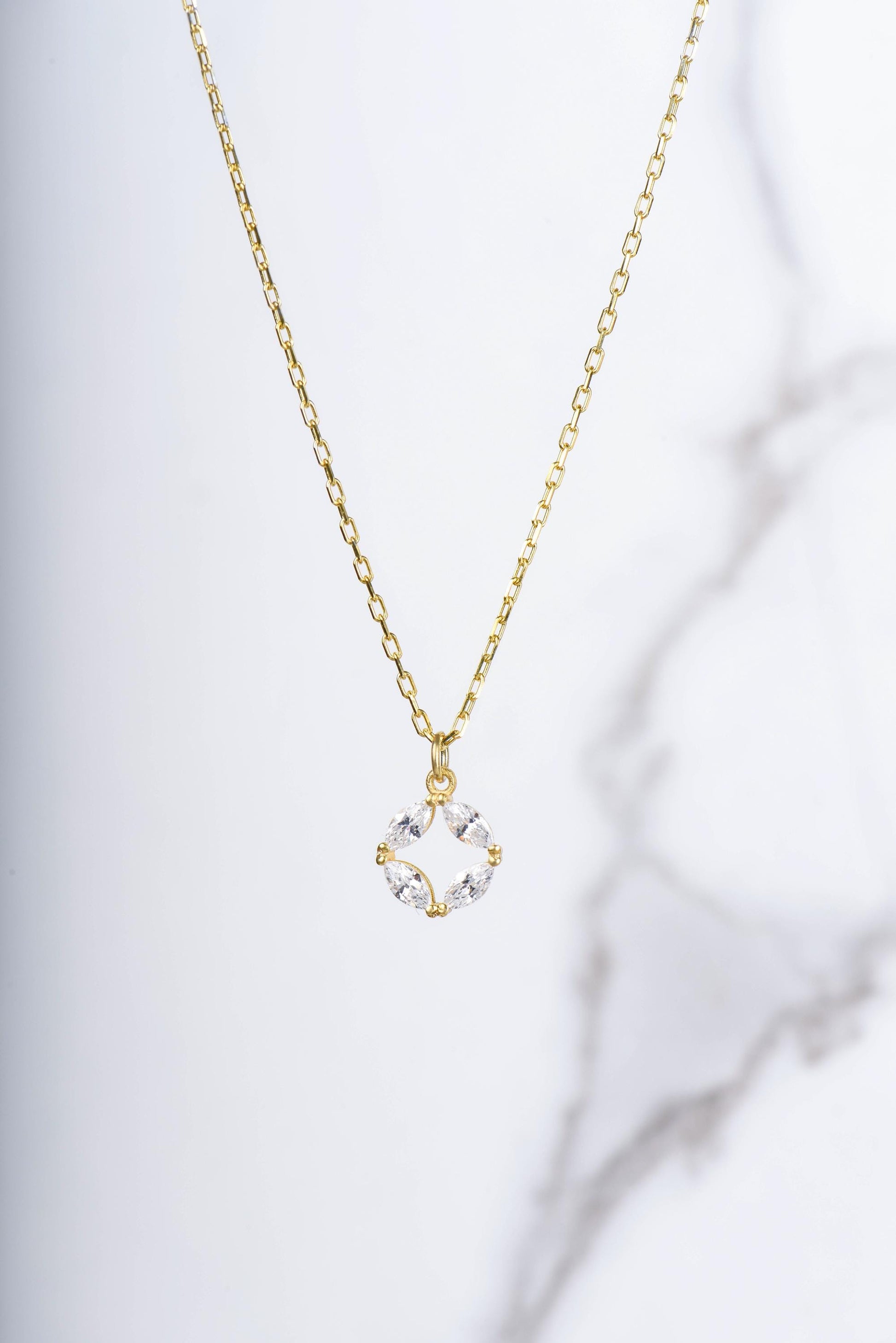 🔷 Bring sophistication and depth to your jewelry collection with this captivating 14K yellow gold necklace. Designed in a circular formation, it features four marquise-cut London blue topaz stones (4x2mm each) totaling 0.40ct, arranged with fine symmetry and sparkle.