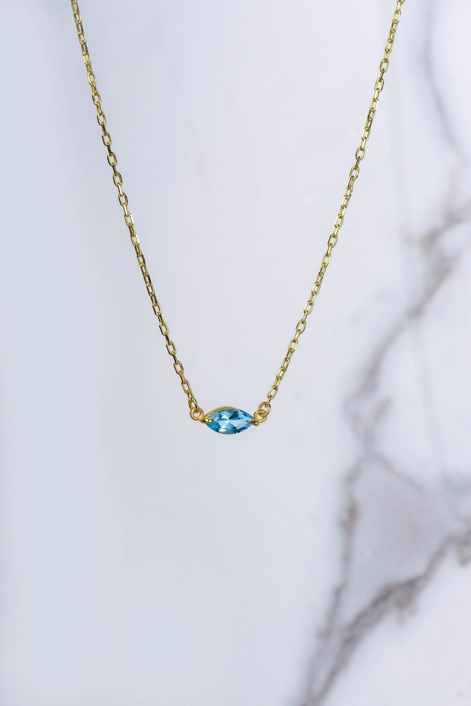 14K Yellow Gold Marquise Aquamarine Necklace - Dainty Blue Gemstone Pendant for Her