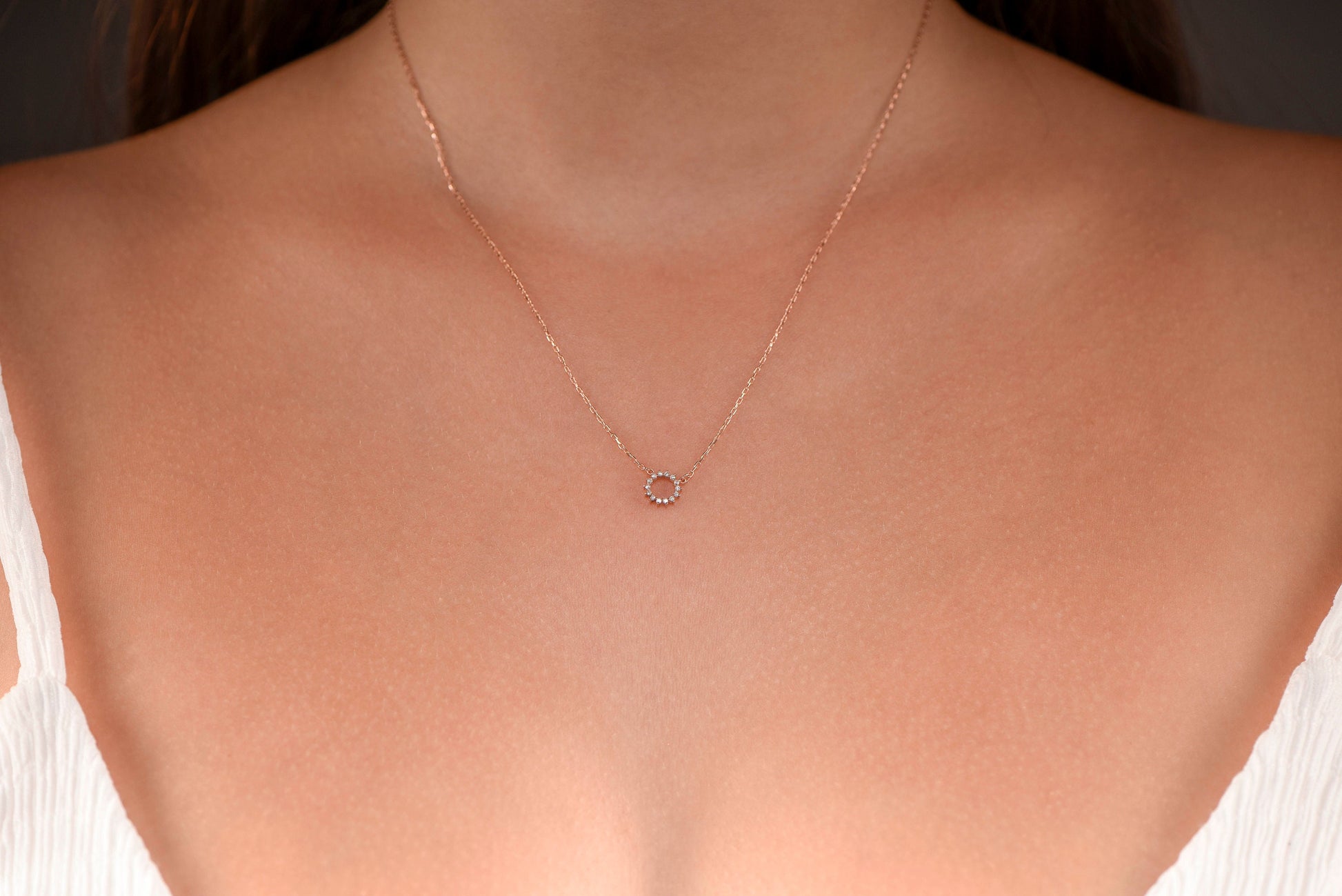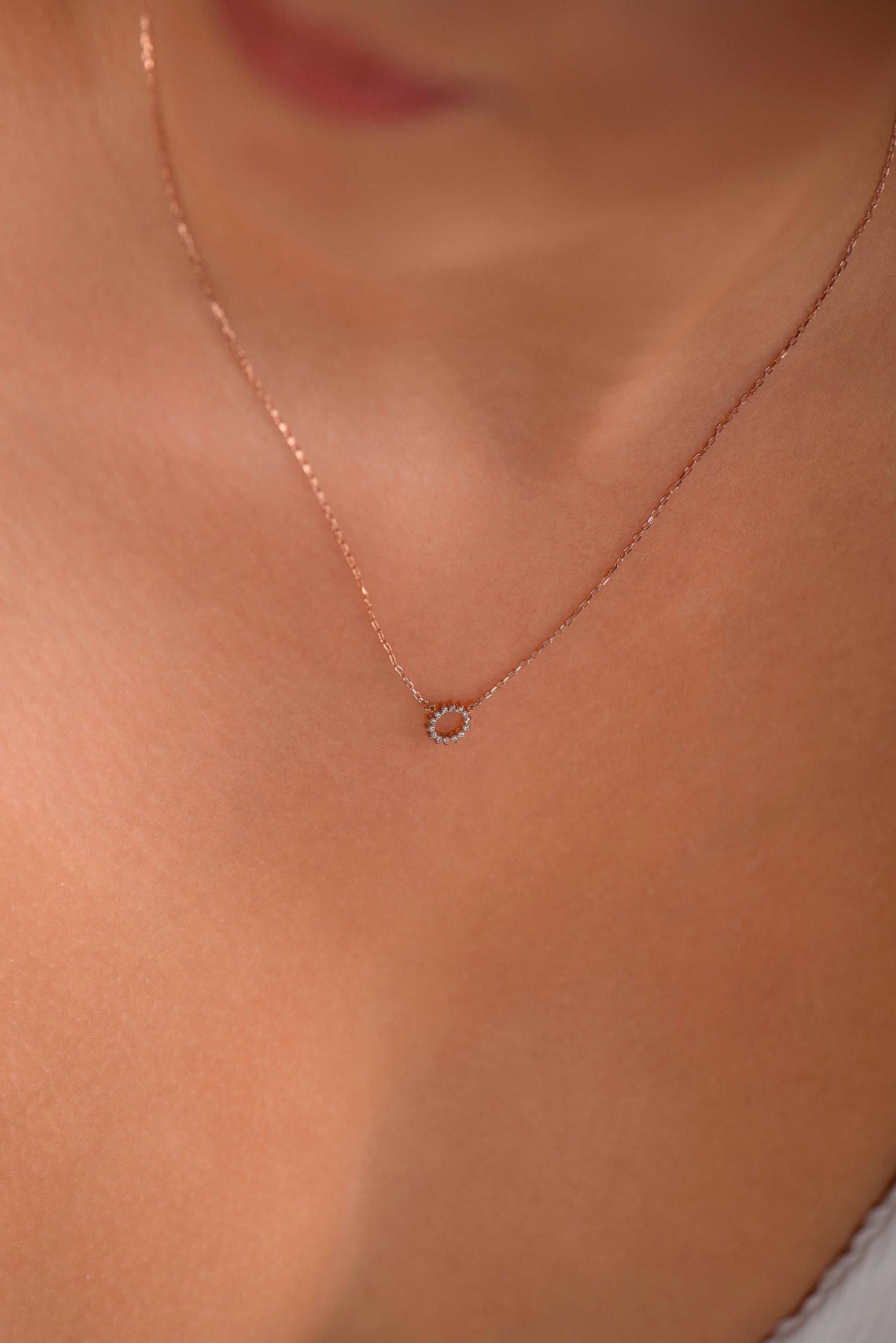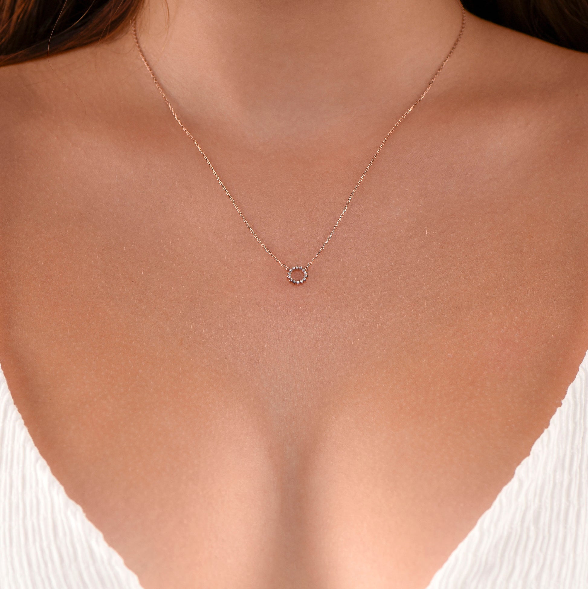 14K Yellow Gold Sunburst Diamond Necklace - Dainty Circle Pendant Gift for Her
