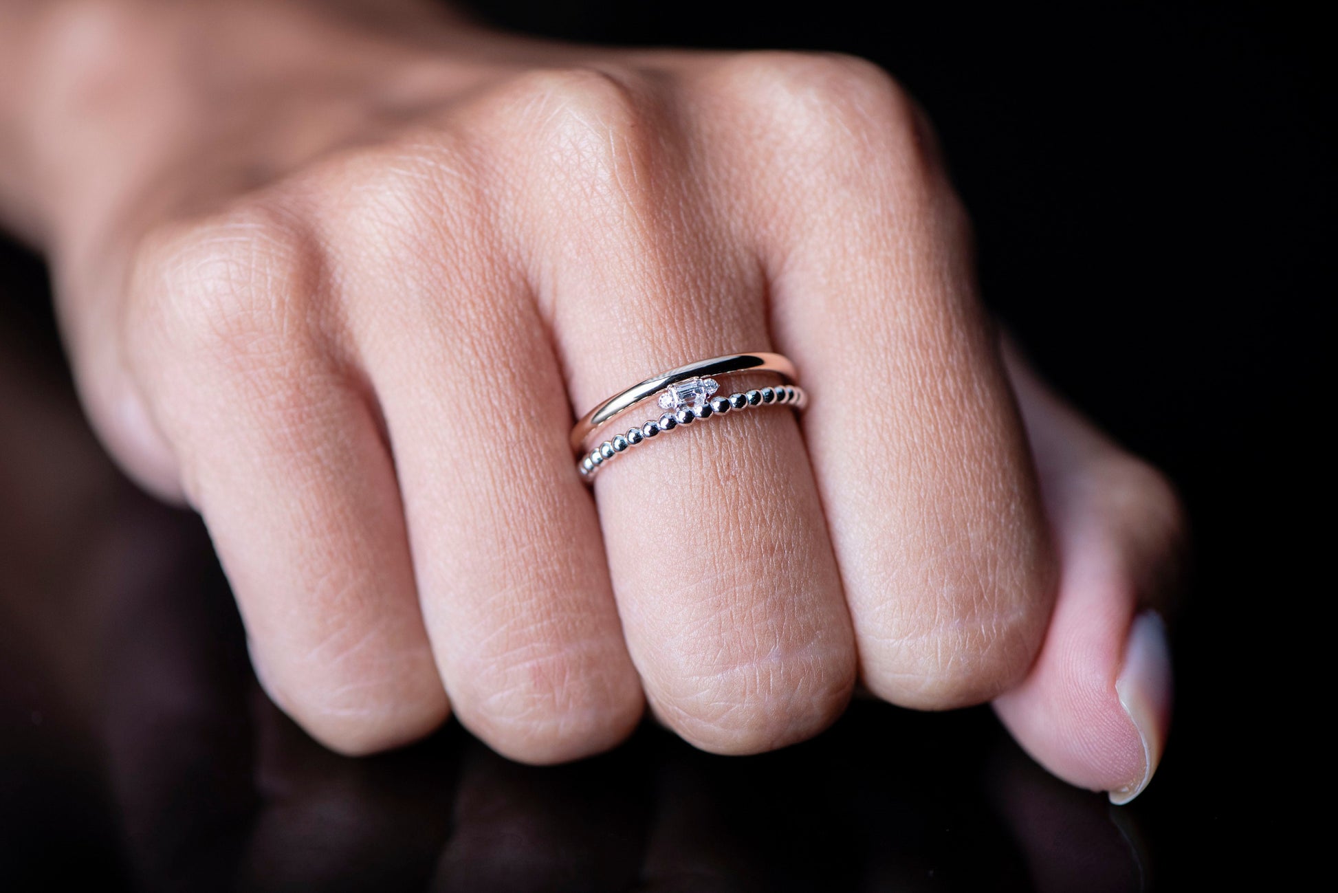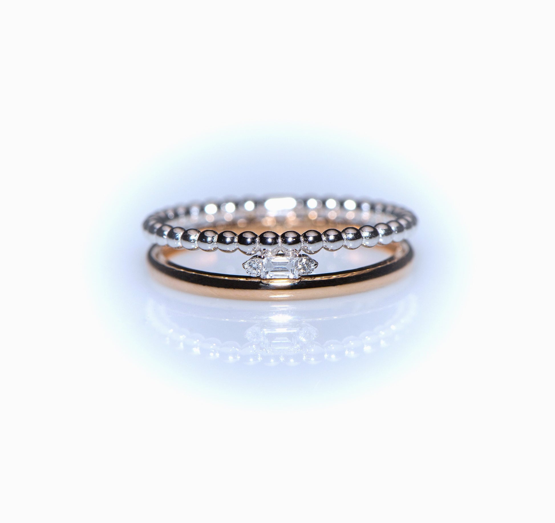 Baguette Diamond Ring,Double Band Baguette Diamond Wedding Ring Made of Rose and White Gold,Luxurious and Chic,Gift For MOM
