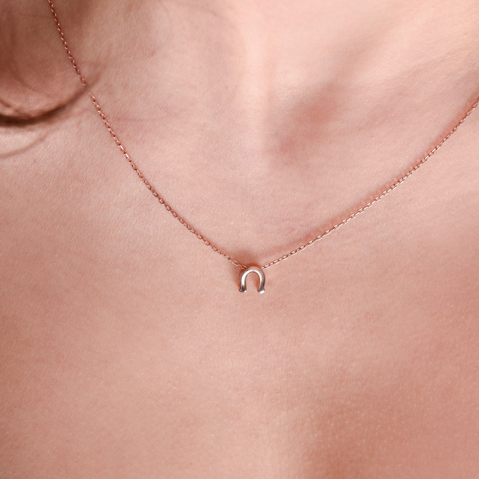 Elegant Horseshoe Necklace - 14K Rose Gold Layered Good Luck Charm,Birthday Gift Necklace,Lucky Symbol Necklace,Christmas Gift Necklace