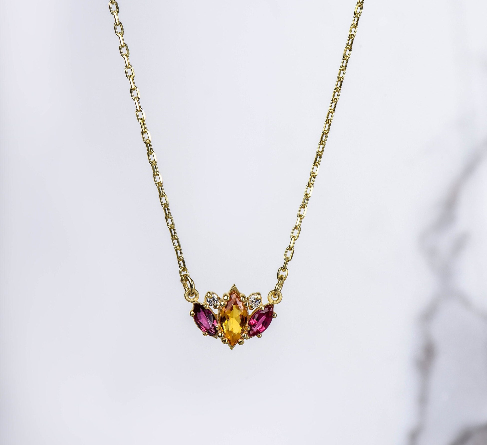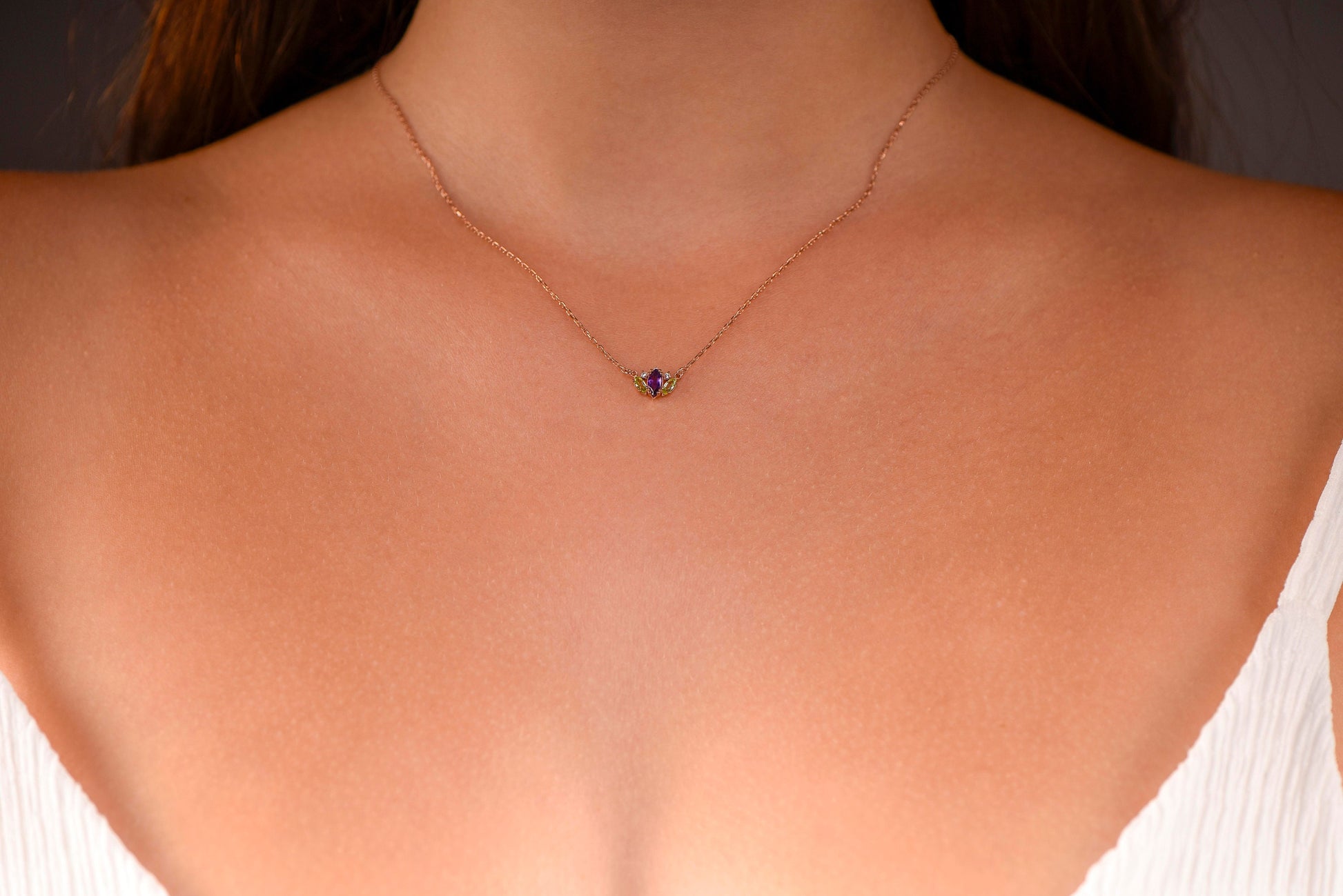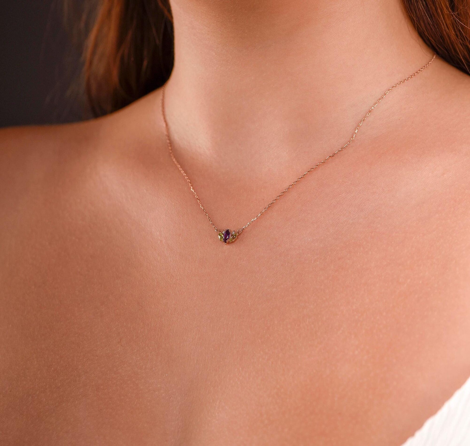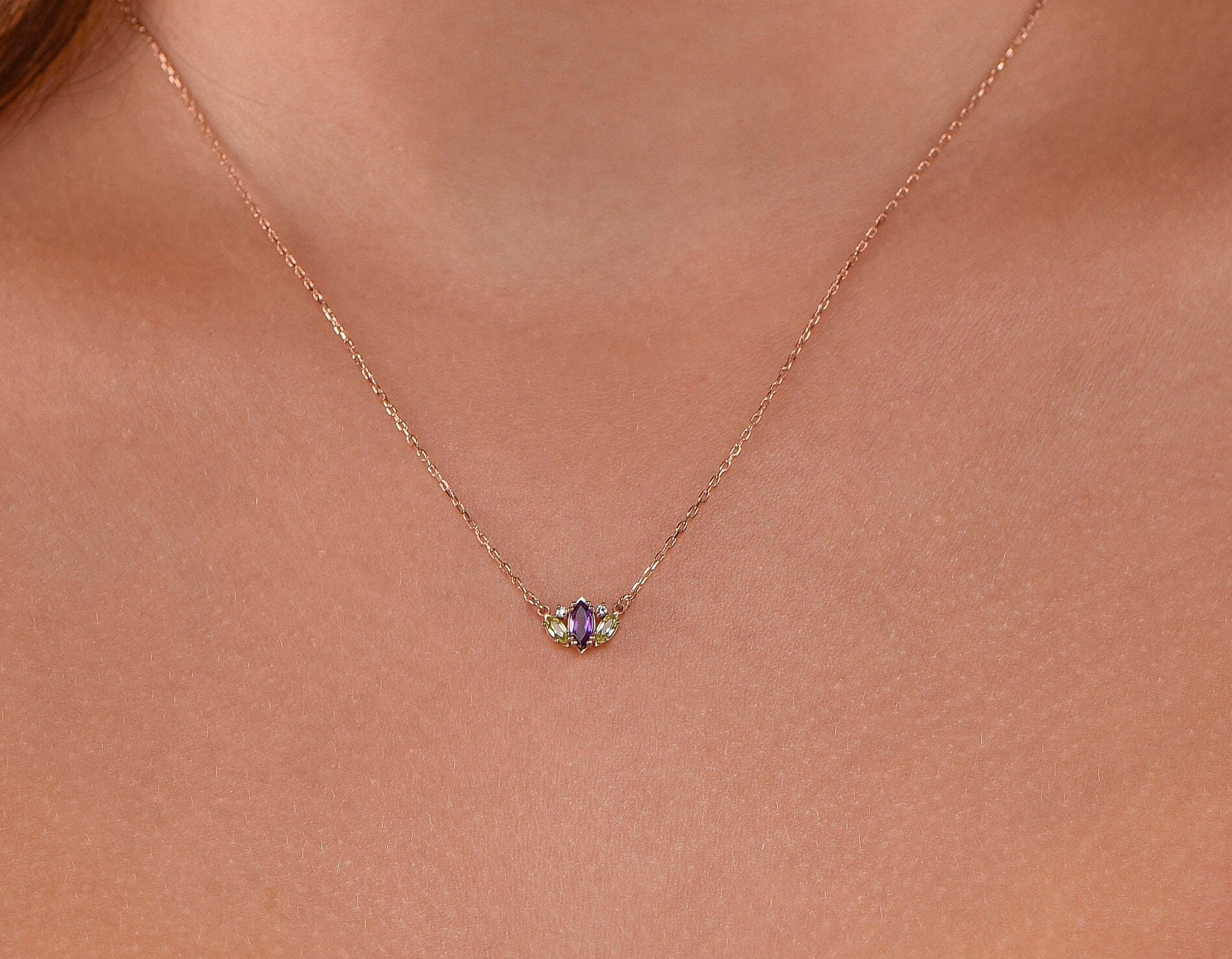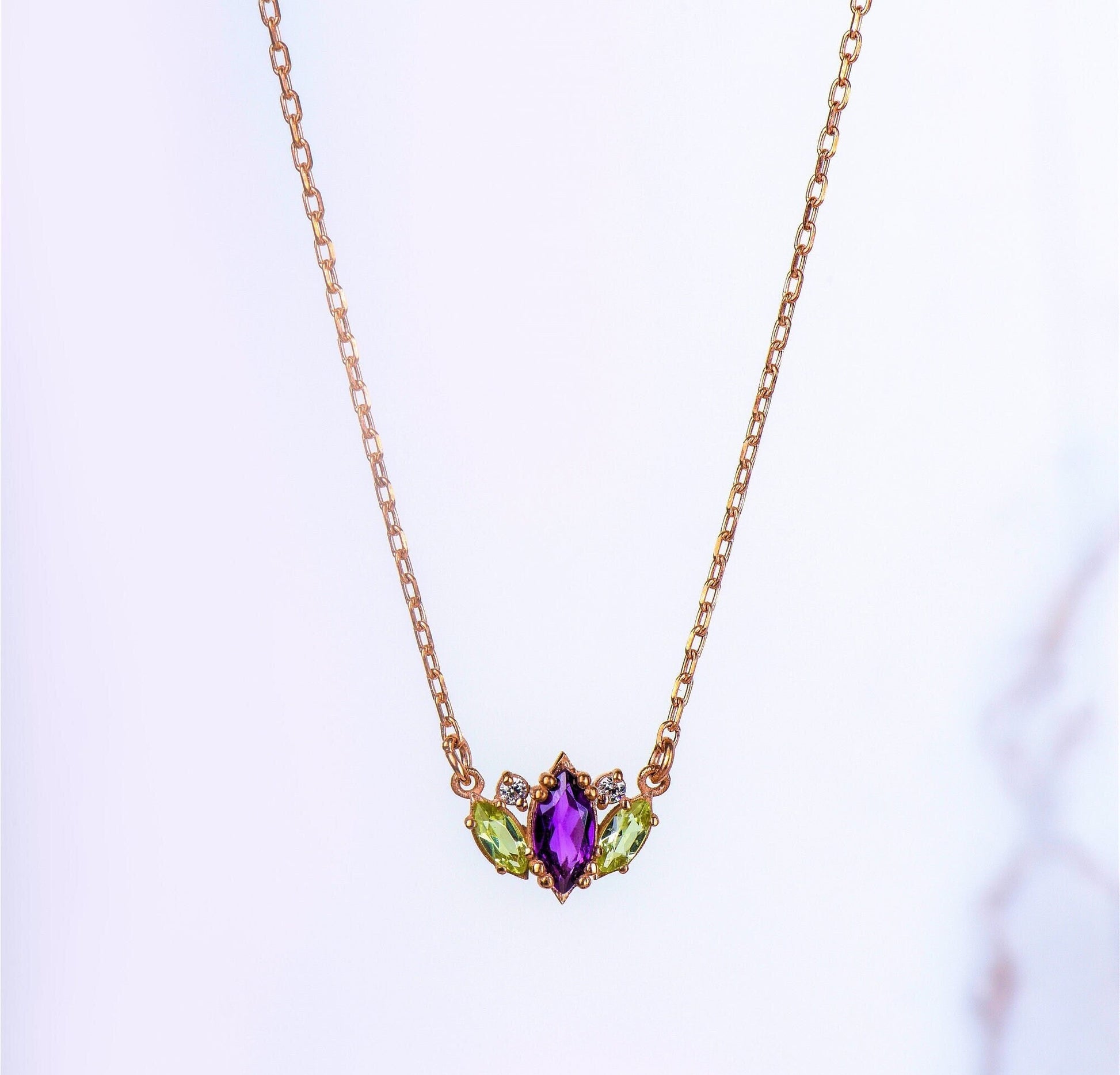 Gold Amethyst Stone Necklace, Peridot Stone Necklace, Amethyst and Peridot Stone Necklace, Marquise Cut Necklace,Christmas Gift Necklace