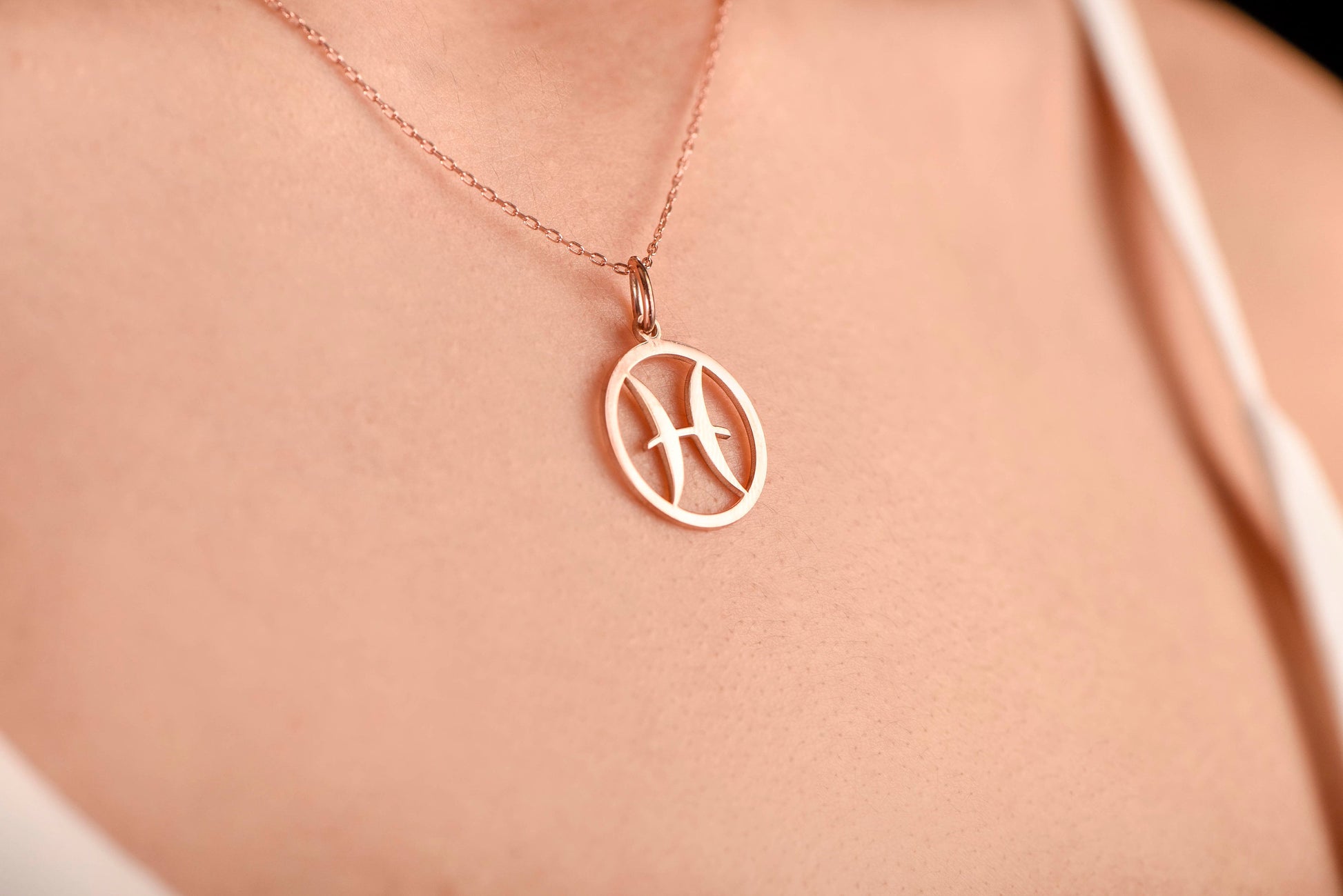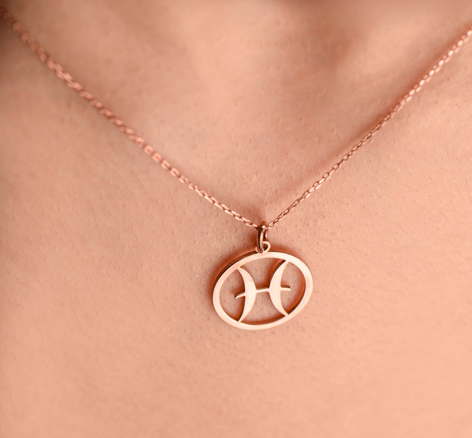 Gold Pisces Sign Necklace,Unique Zodiac Charm,Astrology Pendant for Her,Birthday Gift Necklace,Gift For Girlfriend,Birthday Gift Necklace