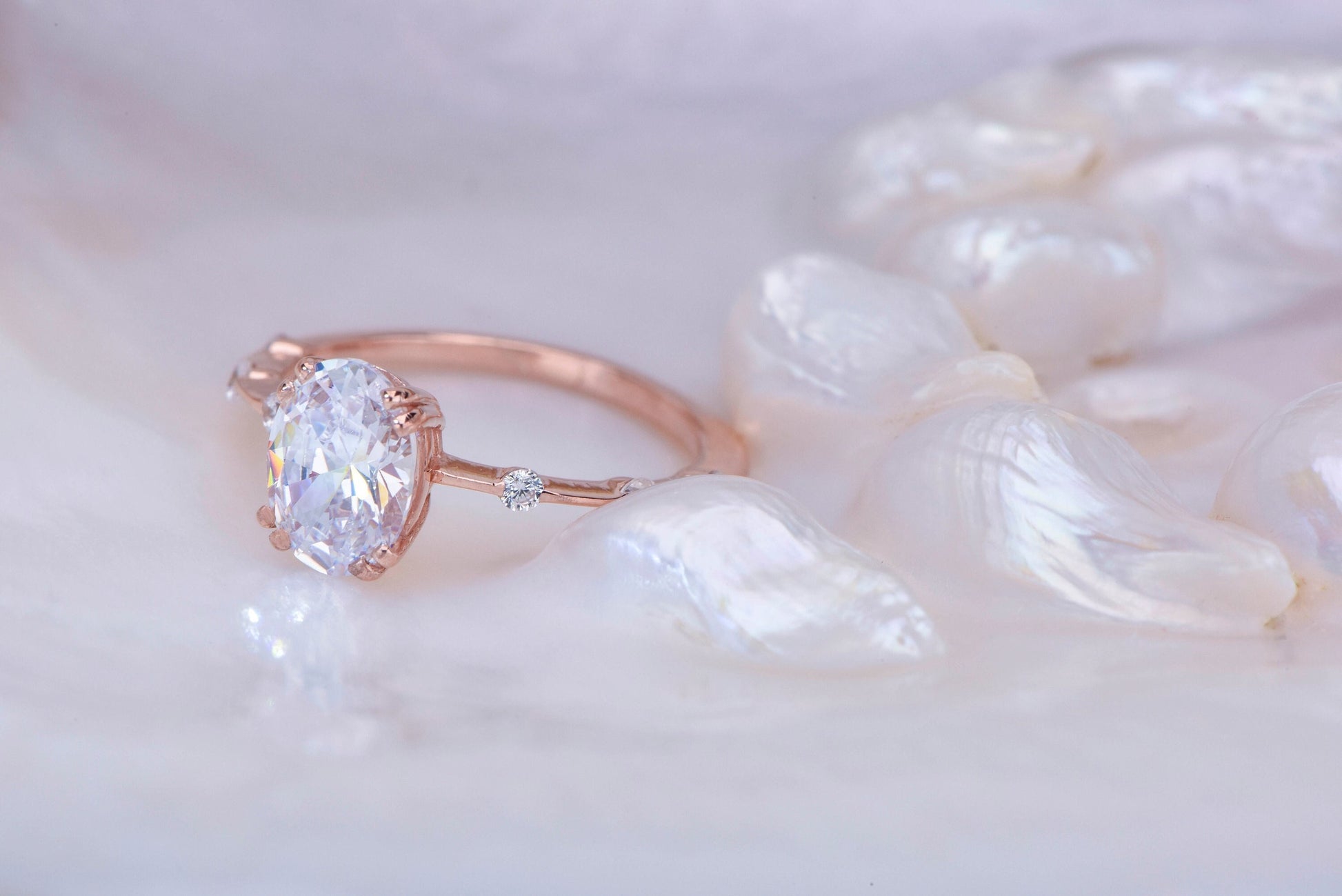Introducing our exquisite Oval Solitaire Ring, adorned with stunning stones on the edges, crafted meticulously in solid rose gold. This elegant and contemporary ring features a mesmerizing oval-cut stone as its centerpiece, radiating timeless elegance. The delicate stones lining the sides add a touch of glamour and sparkle, making it a true showstopper. With its superior craftsmanship and luxurious rose gold finish, this ring is destined to be cherished as a cherished heirloom piece for years to come. Elevate your style with this remarkable solitaire ring - a perfect accessory for any occasion.