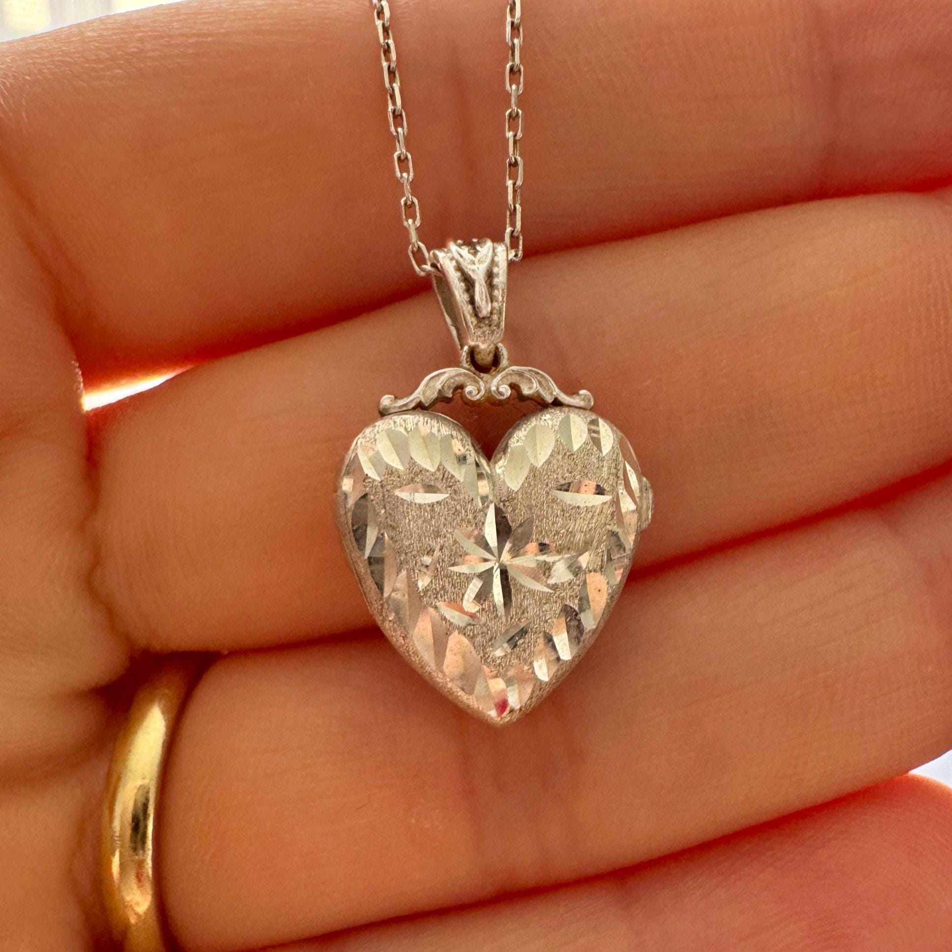 Keep your most precious memories close with this magical heart-shaped locket — delicately hand-engraved with a radiant Polaris (Kutup Yıldızı) at its center, encircled by graceful leaf motifs that shimmer in the light ✨. Whether as a heartfelt gift or a timeless keepsake for yourself, this locket speaks of love, legacy, and light.