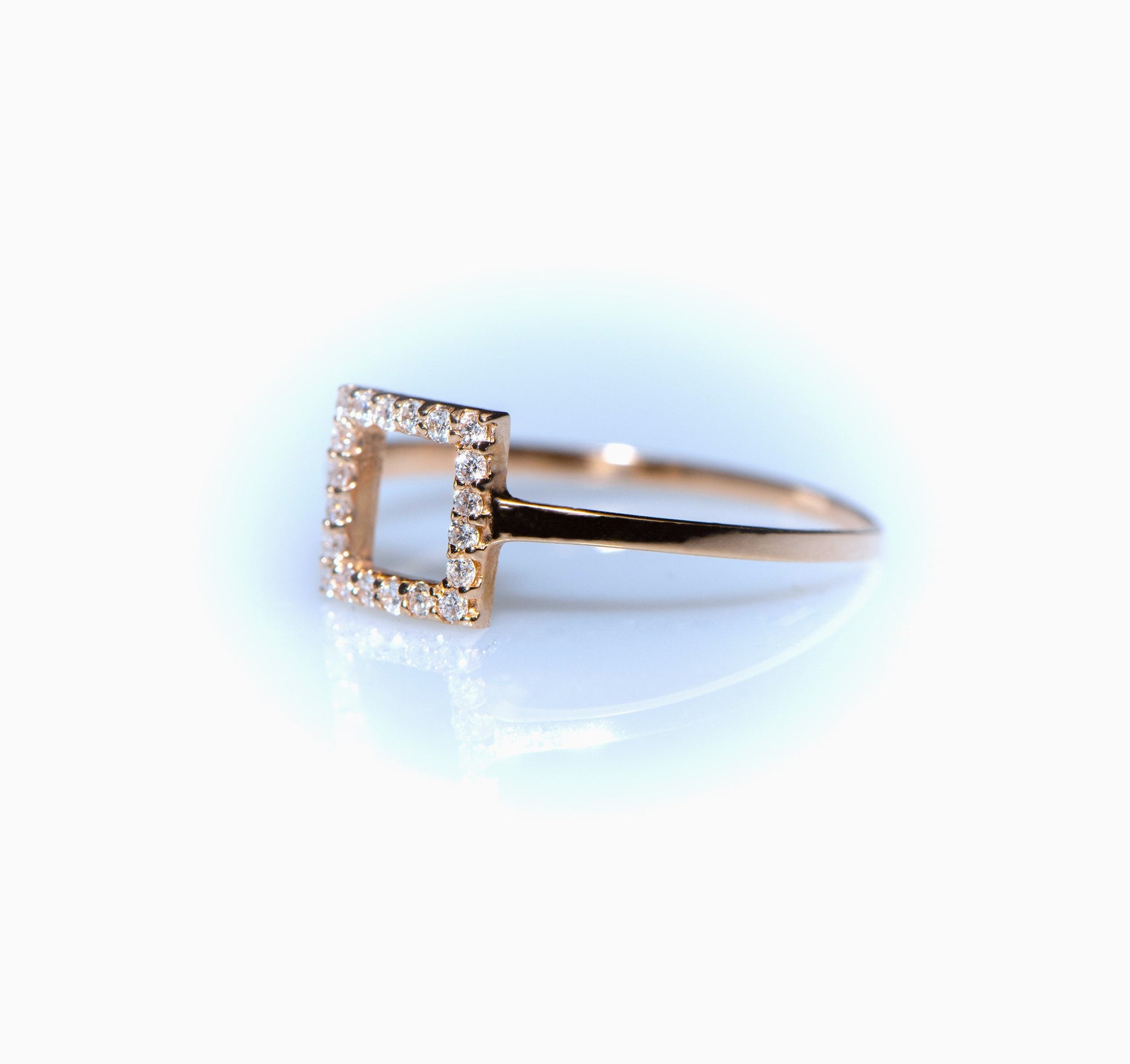 Discover refined minimalism with this stunning square-shaped diamond ring, crafted from solid 14K gold and outlined with brilliant natural diamonds. The open square silhouette (7.5x7.5mm) creates a modern, airy feel, enhanced by a delicate band and a full diamond pavé that shines with every movement.