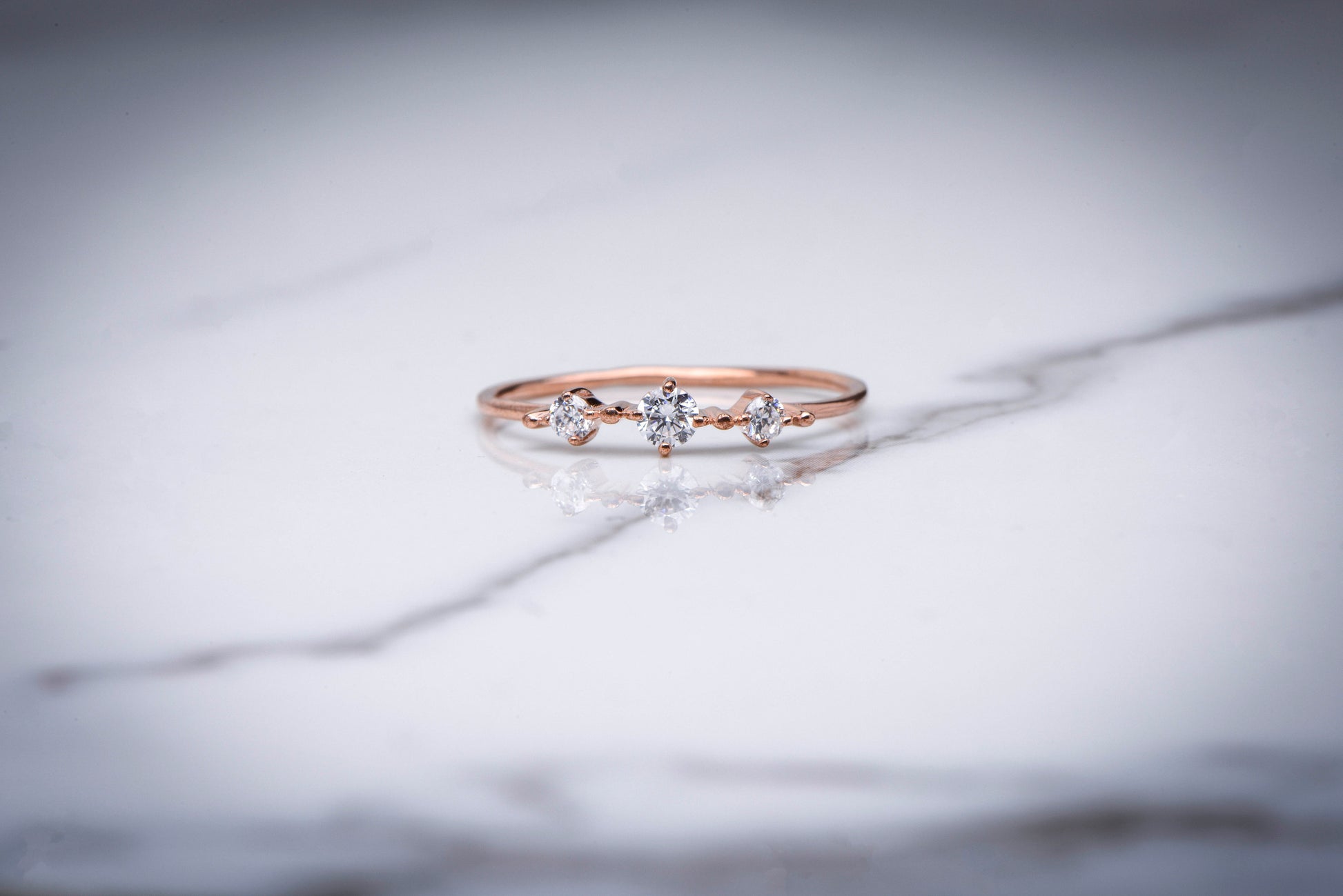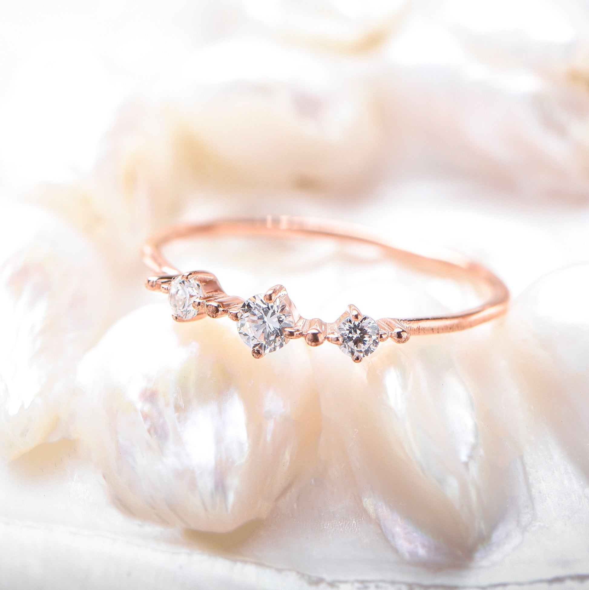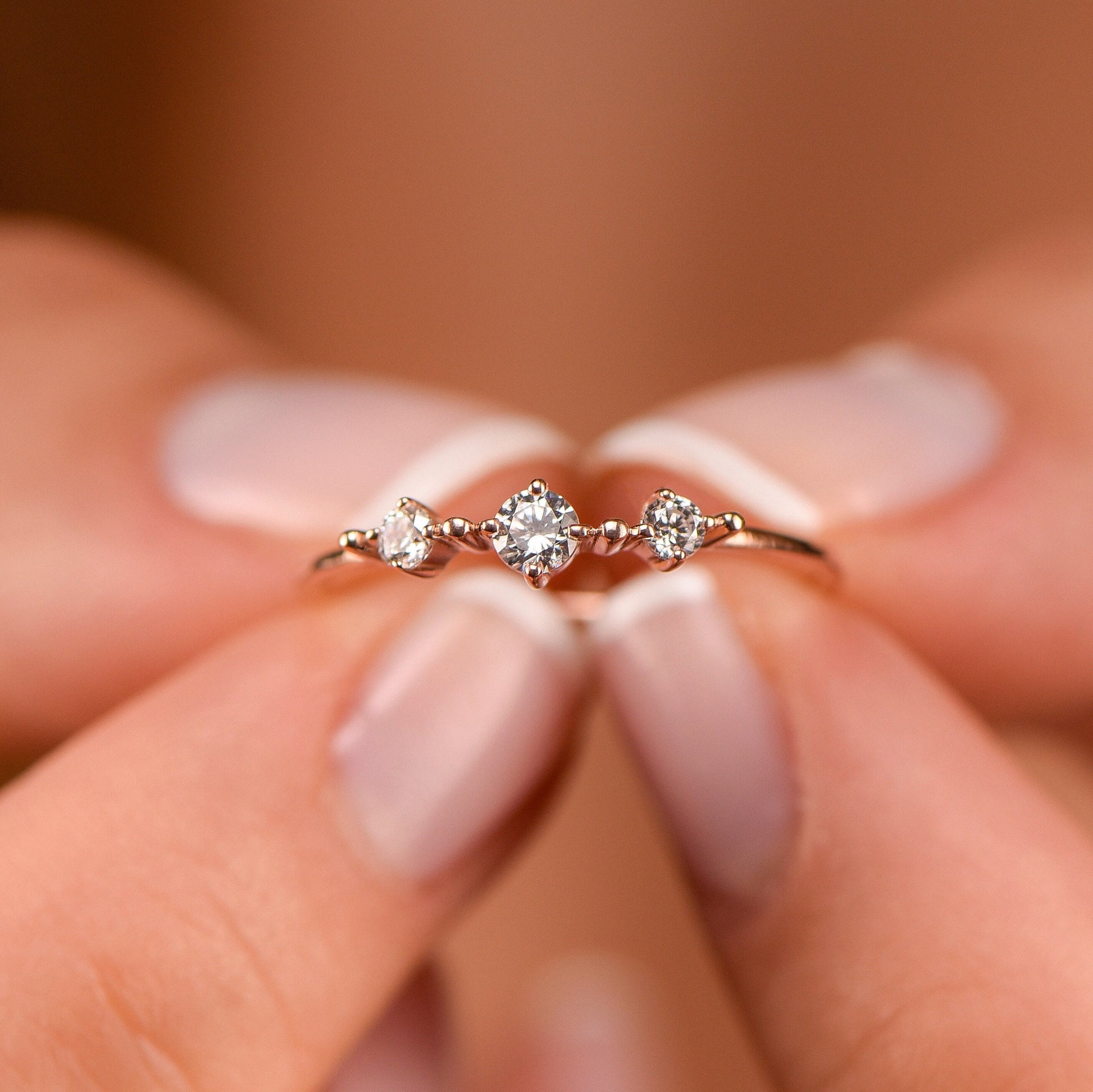 Minimalist Three Stone Diamond Ring in 14K Gold, Dainty Stacking Ring, Everyday Gold Band, Dainty Mother’s Day Gift for Her