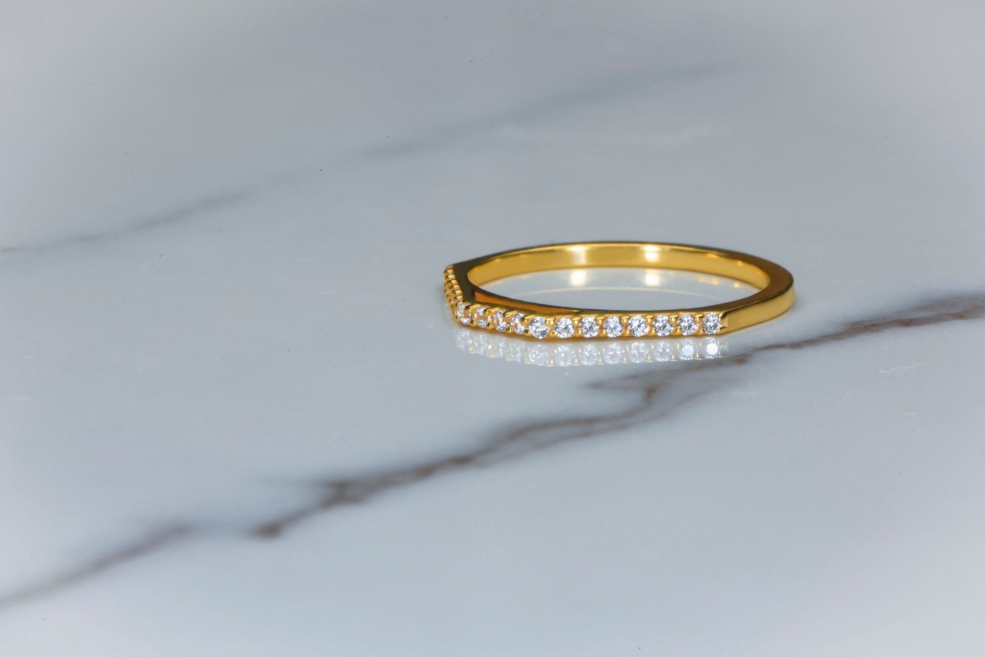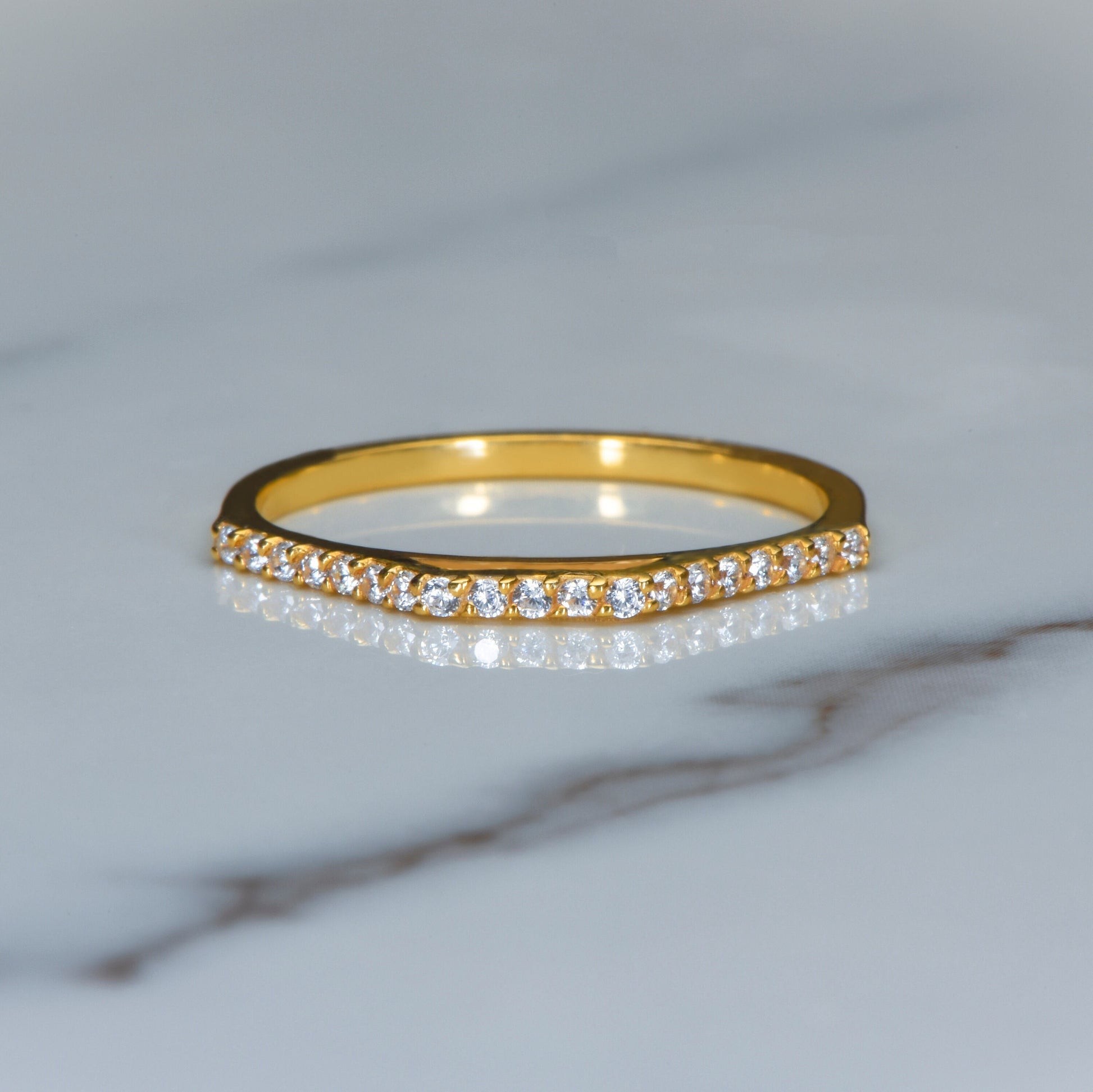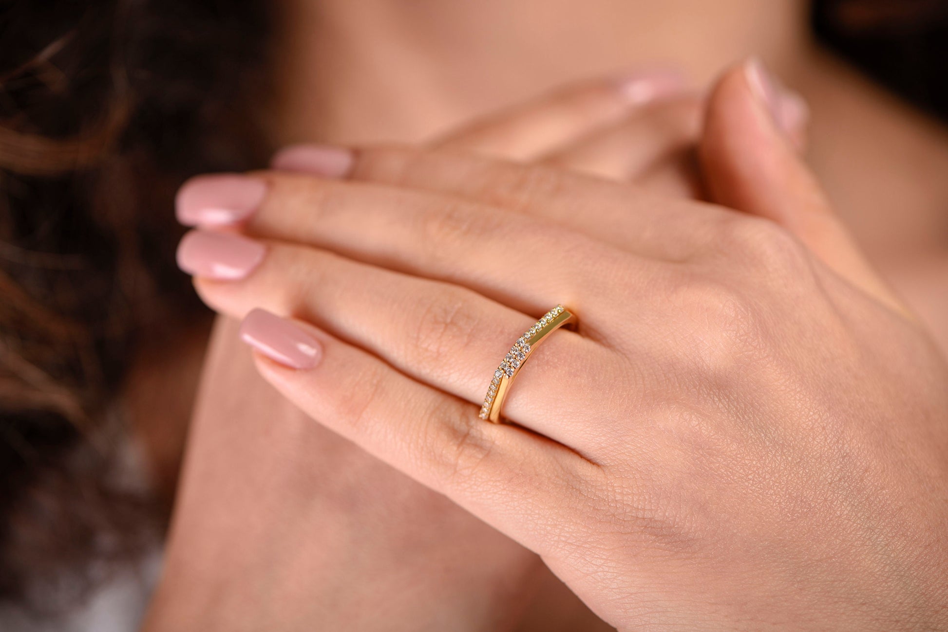 Introducing our Half Eternity Diamond New Generation Wedding Ring, an exquisite symbol of love and commitment. Crafted in 14K Solid Gold, this Pyramid Style Diamond Ring is a stunning piece of art that will captivate all who lay eyes on it. The thin band is delicately adorned with a half eternity of brilliant diamonds, representing an eternal bond. Its sophisticated design combines modernity and classic elegance, making it a perfect choice for any bride. Whether as an engagement ring or a wedding band, this Thin Half Eternity Diamond Ring is sure to make a statement and become a treasured keepsake for a lifetime.