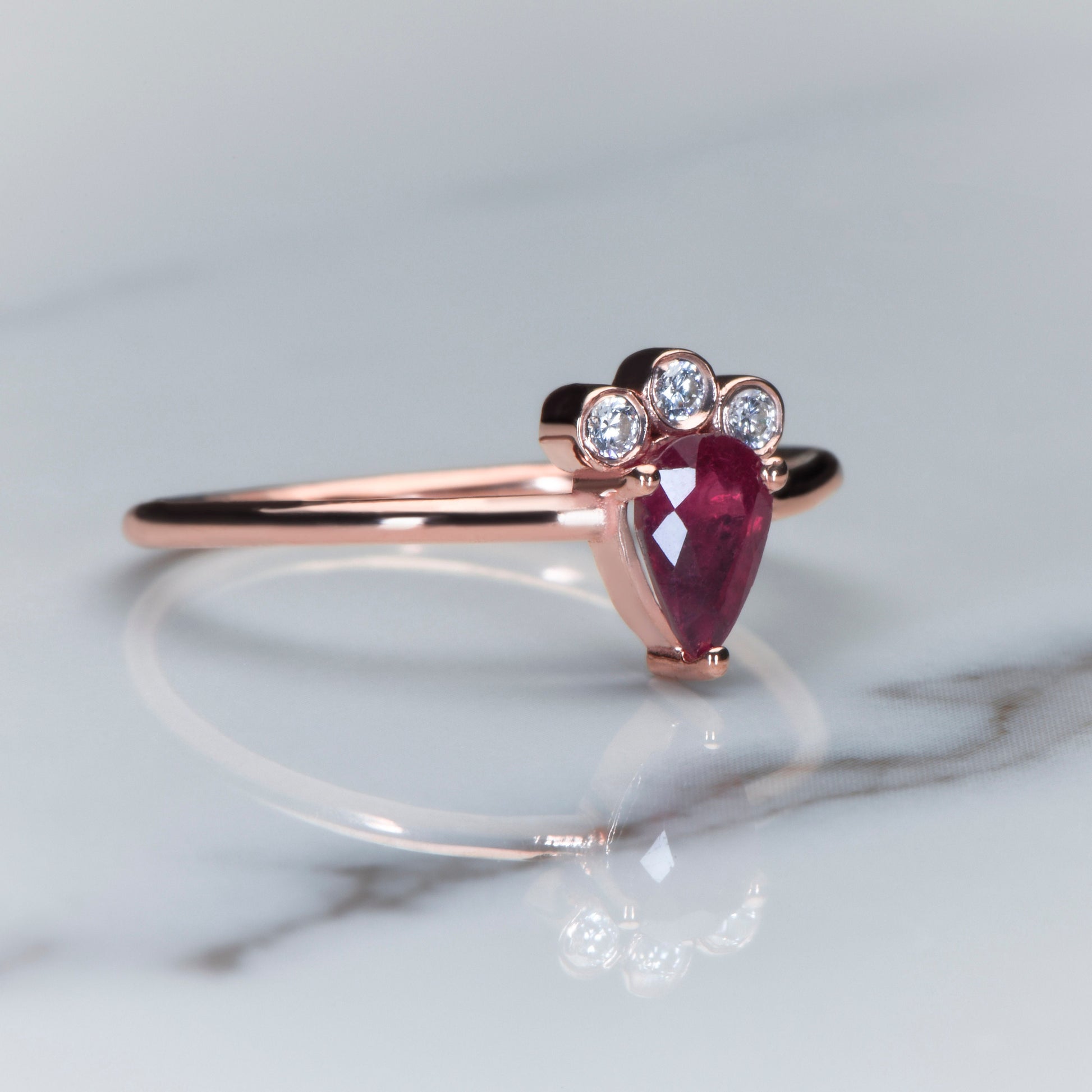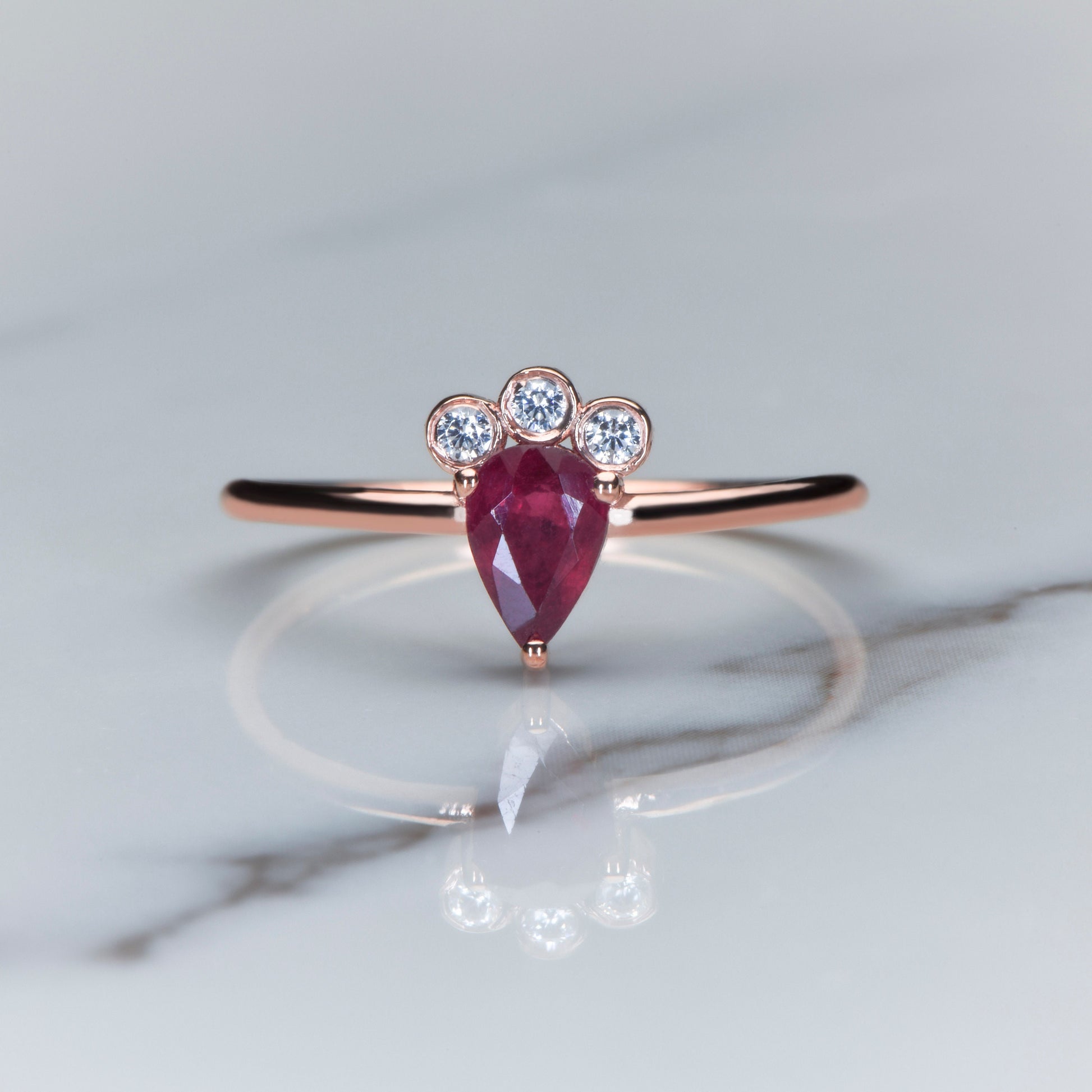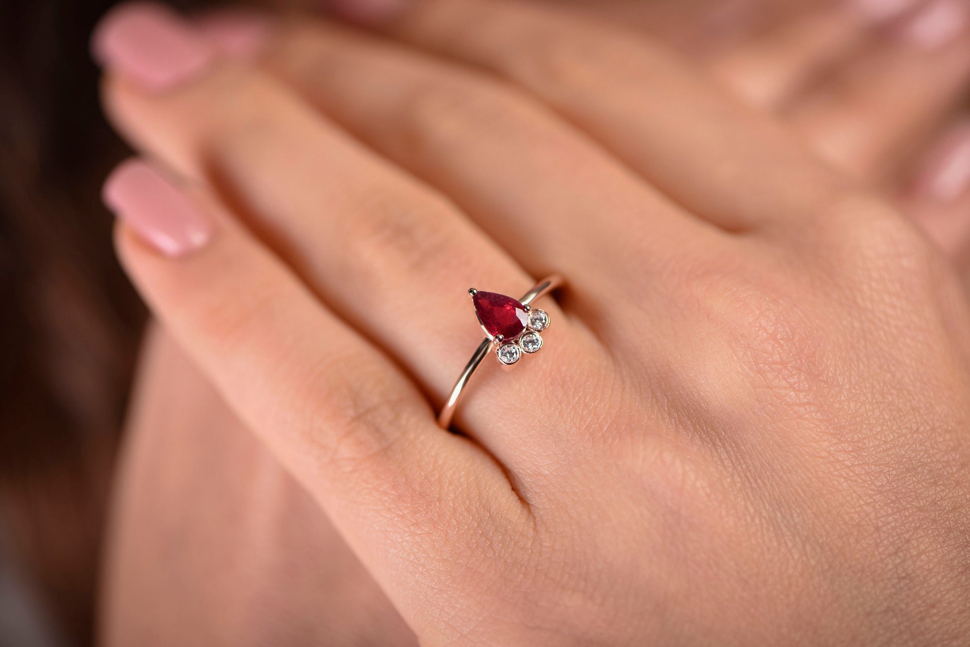 Pear Cut Ruby Ring – 14K Solid Gold | Minimal Gemstone Ring | Mother’s Day Gift | Handmade Diamond Accent Ring