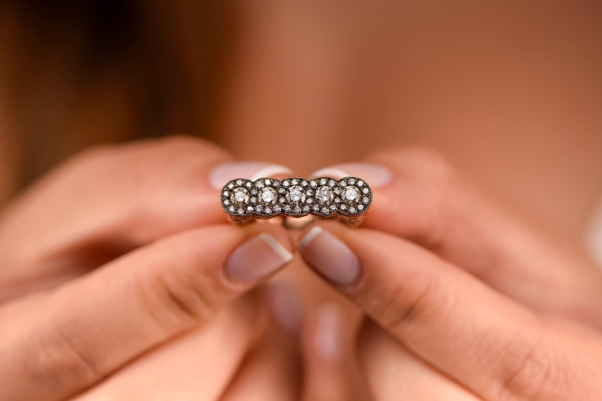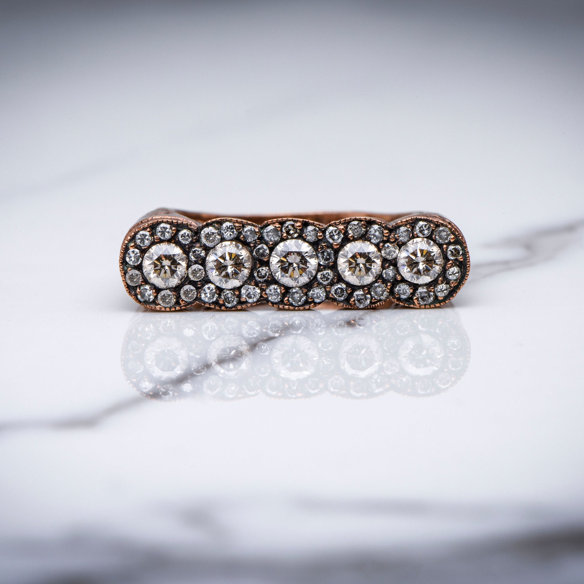 Solid Gold Ring, 5 Stone Ring with Antiqued Detail, Vintage Style Diamond Ring, April Gift Ring, Wedding Gift Ring,Gift For Mom