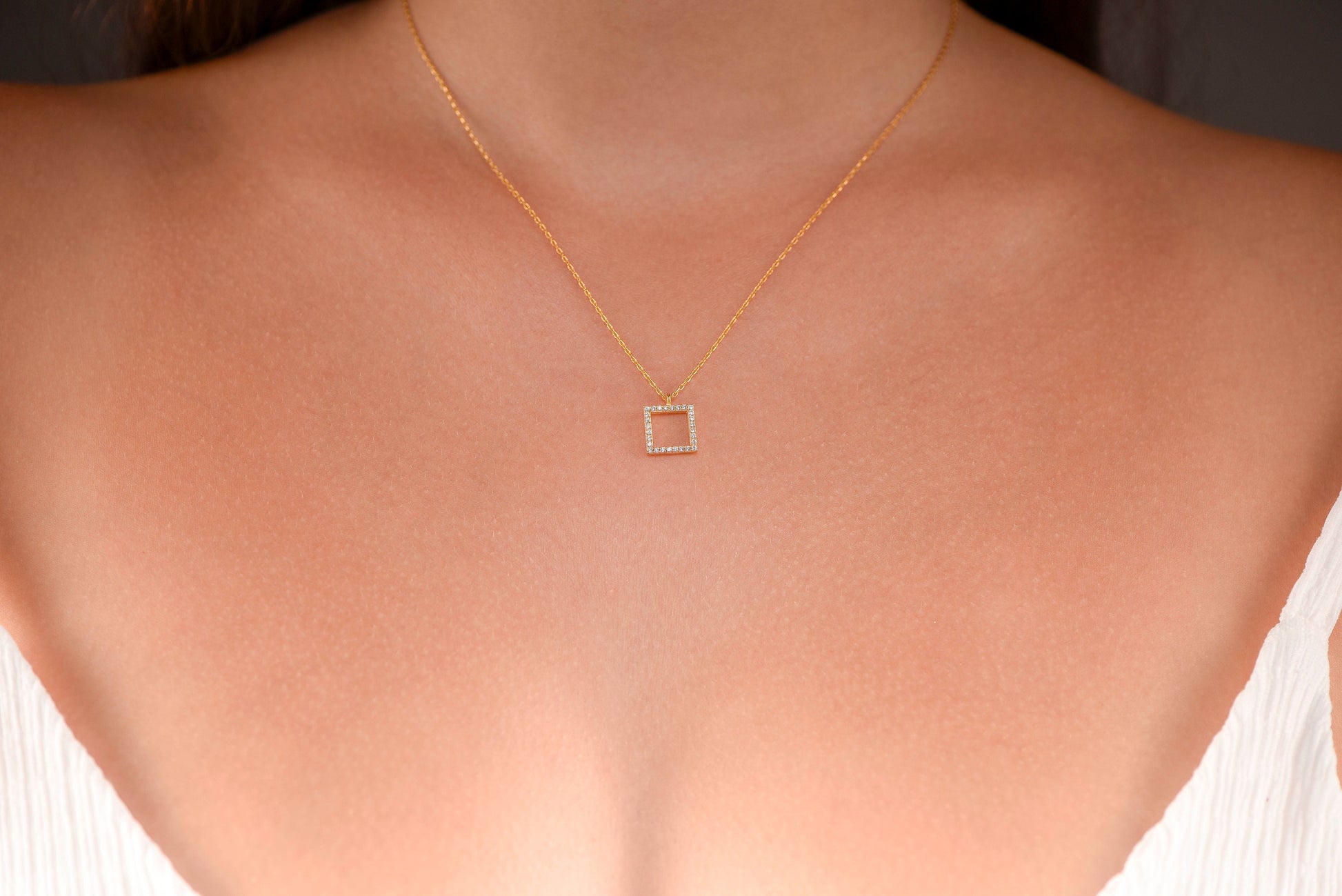 Solid Gold Square Diamond Necklace - Dazzling Statement Piece-Solid Gold Diamond Necklace- Gift for Mom