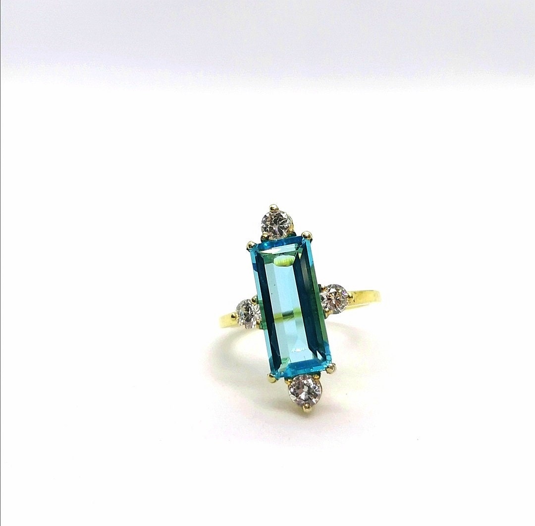 Statement Baguette Peridot and Diamond Ring in 14k Gold – Modern Vintage Engagement or Mother’s Day Gift