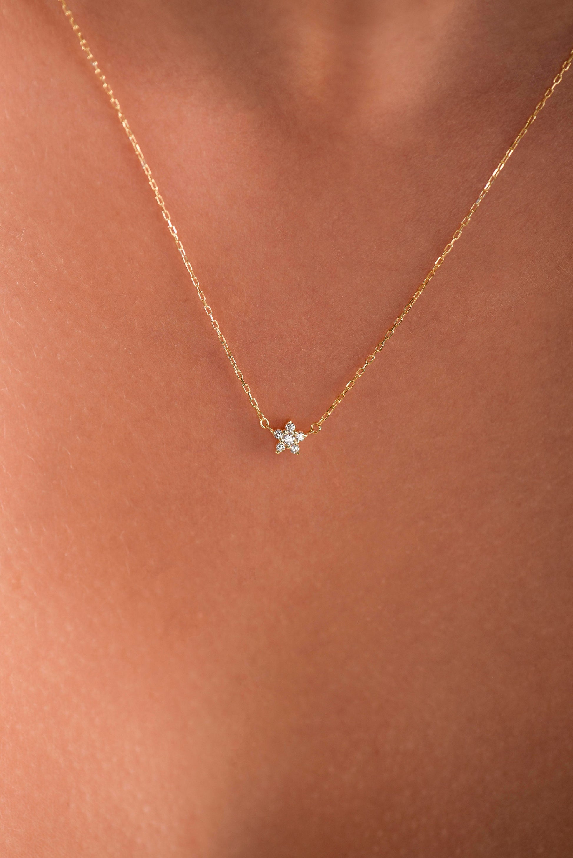 Thiny Star Necklace,Minimal Star Necklace,Solid Gold Diamond Star Necklace,Stylish Star Necklace,Mother's Day Gift, Gift For Mom