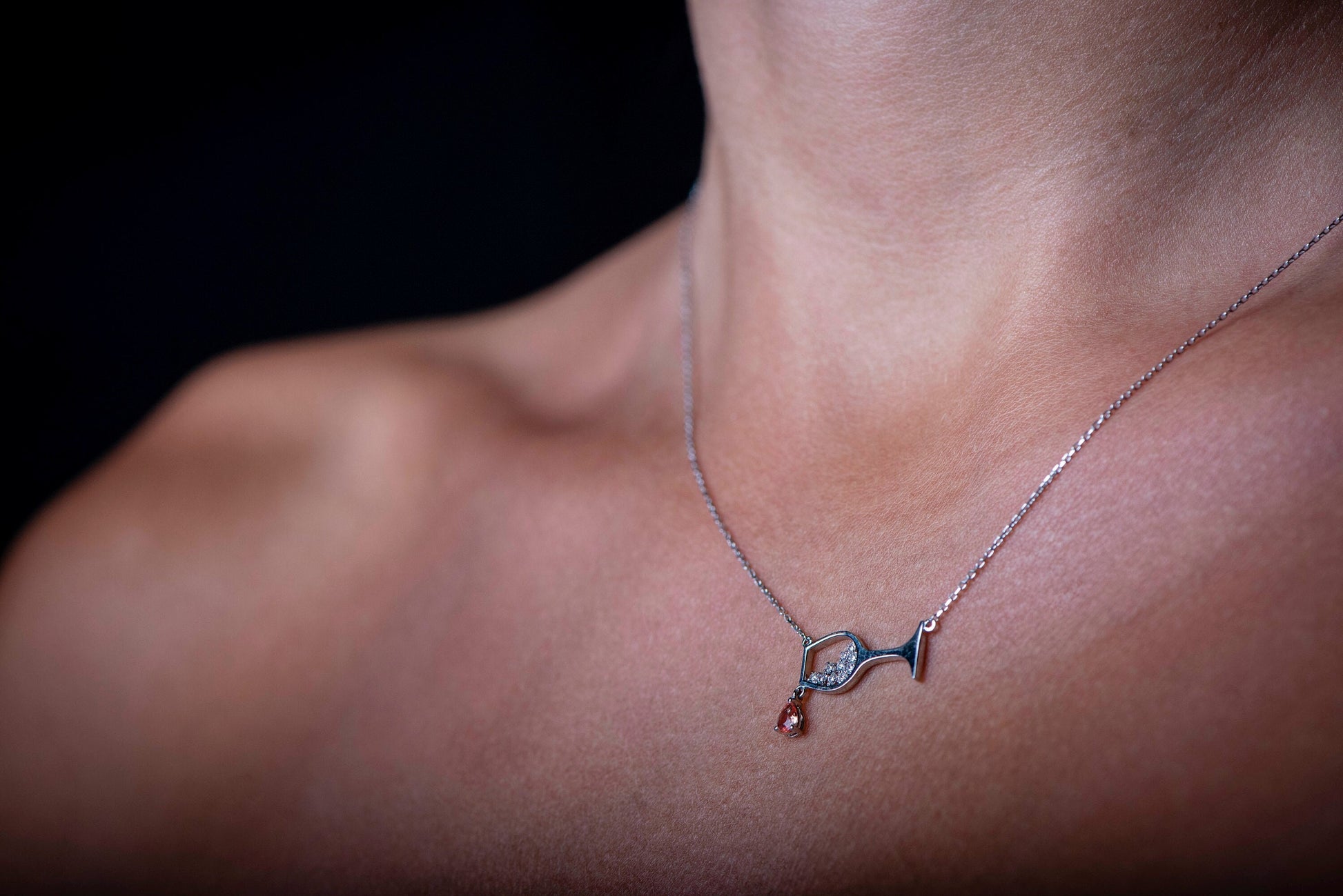 Introducing our exquisite Solid Gold Wine Glass Ruby Necklace with Diamond. This one-of-a-kind piece is a true celebration of elegance and refinement. Crafted with meticulous attention to detail, the pendant showcases a stunning wine glass design, delicately crafted from solid gold. The vibrant ruby gemstone, exuding romantic red hues, adds a touch of sophistication and allure. To elevate the elegance even further, a shimmering diamond accent gracefully adorns the stem, captivating the light with its brilliant sparkle. The combination of precious materials and expert craftsmanship make this necklace a truly exceptional piece for any wine enthusiast or lover of luxury. Elevate your jewelry collection with this unique and captivating necklace, perfect for special occasions or as a sentimental gift.